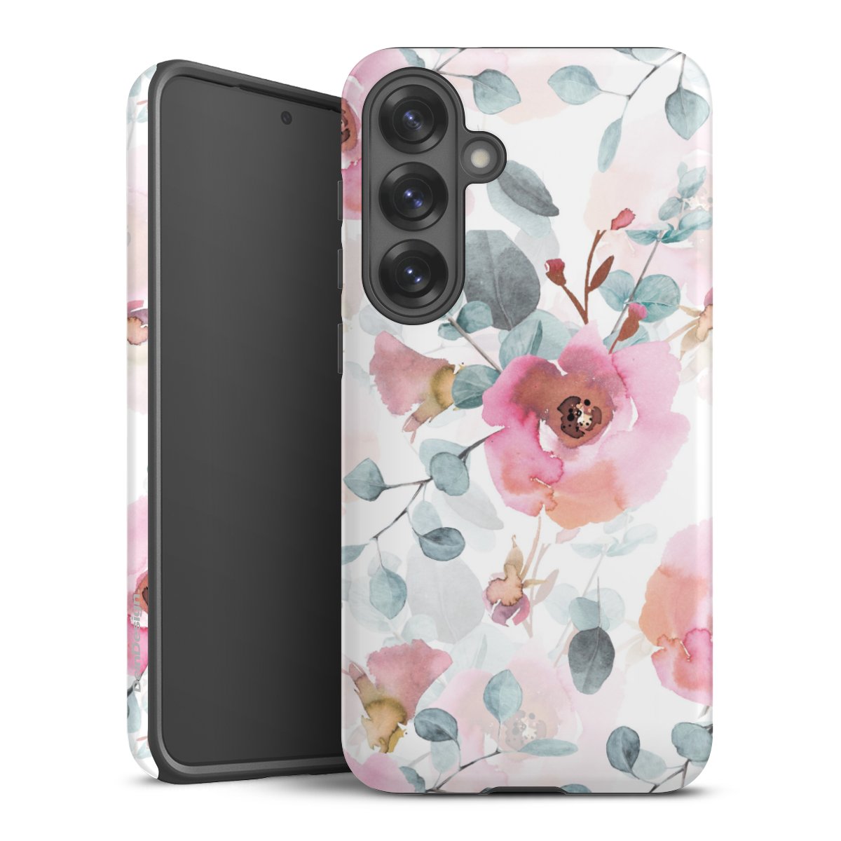 Bei dieser Handyhülle nutzen wird den besonders langlebigen Sublimationsdruck. Dieses raffinierte Druckverfahren sticht durch sein hochwertiges, gestochen scharfes Druckbild in brillanten Farben hervor. Der Druckbereich umfasst die ganze Hartschale inklusive der Ecken und Kanten, lediglich der Silikon-Einleger bleibt einfarbig schwarz. Wähle für Dein Design entweder eines unserer exklusiven Shop-Motive, oder werde kreativ und gestalte Dein Wunschdesign zum Beispiel mit Fotos und Overlays selbst.