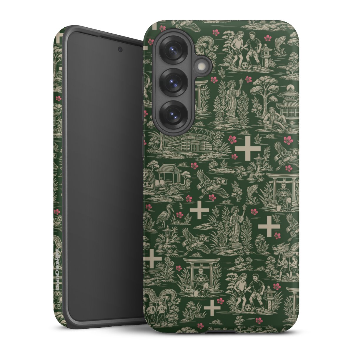 Bei dieser Handyhülle nutzen wird den besonders langlebigen Sublimationsdruck. Dieses raffinierte Druckverfahren sticht durch sein hochwertiges, gestochen scharfes Druckbild in brillanten Farben hervor. Der Druckbereich umfasst die ganze Hartschale inklusive der Ecken und Kanten, lediglich der Silikon-Einleger bleibt einfarbig schwarz. Wähle für Dein Design entweder eines unserer exklusiven Shop-Motive, oder werde kreativ und gestalte Dein Wunschdesign zum Beispiel mit Fotos und Overlays selbst.