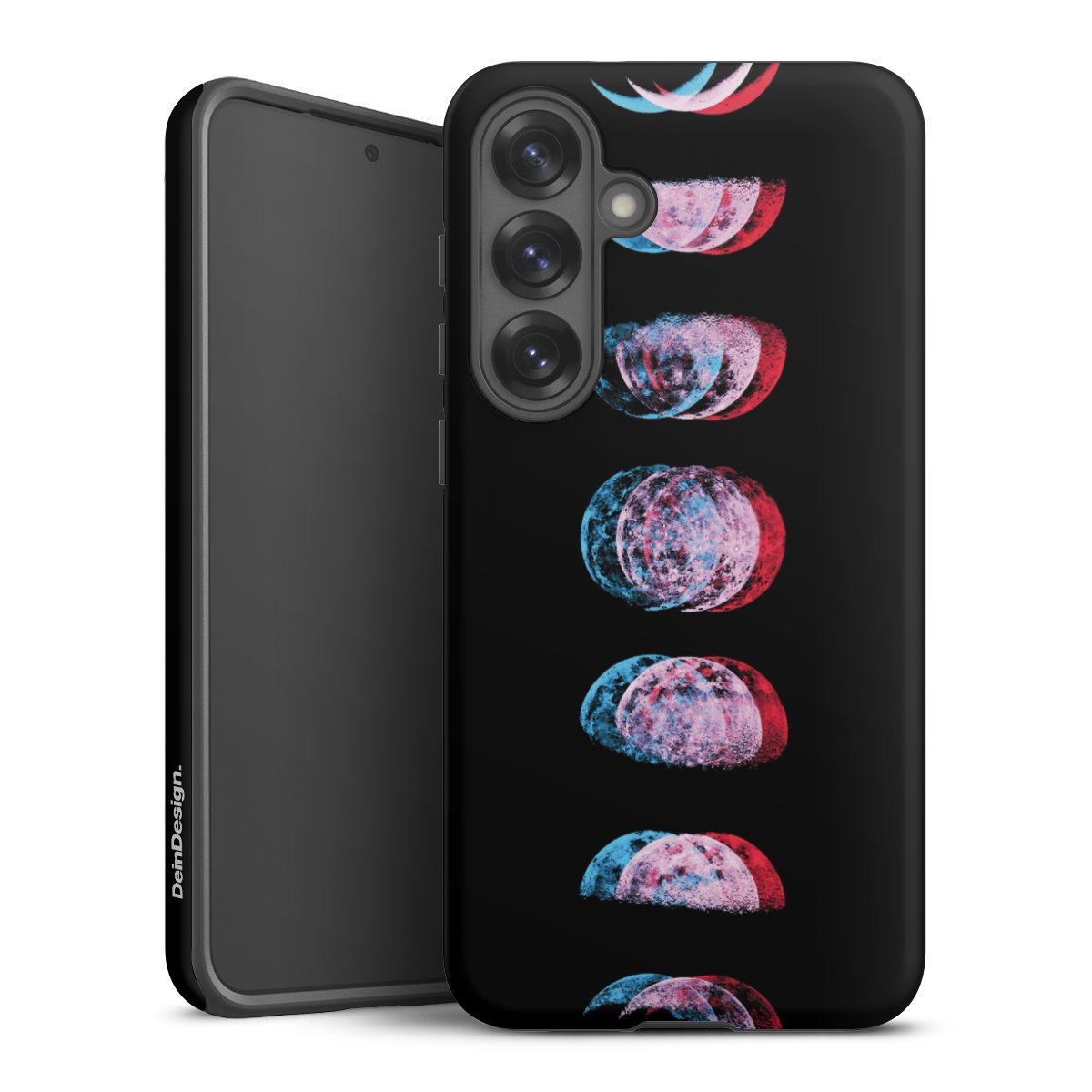 Bei dieser Handyhülle nutzen wird den besonders langlebigen Sublimationsdruck. Dieses raffinierte Druckverfahren sticht durch sein hochwertiges, gestochen scharfes Druckbild in brillanten Farben hervor. Der Druckbereich umfasst die ganze Hartschale inklusive der Ecken und Kanten, lediglich der Silikon-Einleger bleibt einfarbig schwarz. Wähle für Dein Design entweder eines unserer exklusiven Shop-Motive, oder werde kreativ und gestalte Dein Wunschdesign zum Beispiel mit Fotos und Overlays selbst.