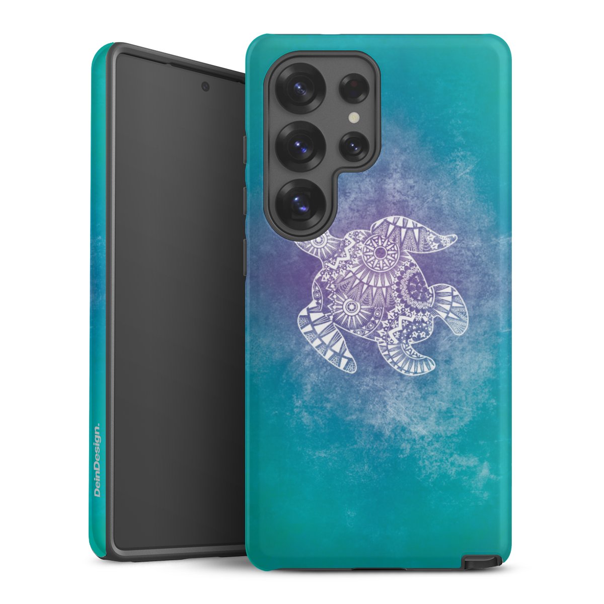 Bei dieser Handyhülle nutzen wird den besonders langlebigen Sublimationsdruck. Dieses raffinierte Druckverfahren sticht durch sein hochwertiges, gestochen scharfes Druckbild in brillanten Farben hervor. Der Druckbereich umfasst die ganze Hartschale inklusive der Ecken und Kanten, lediglich der Silikon-Einleger bleibt einfarbig schwarz. Wähle für Dein Design entweder eines unserer exklusiven Shop-Motive, oder werde kreativ und gestalte Dein Wunschdesign zum Beispiel mit Fotos und Overlays selbst.
