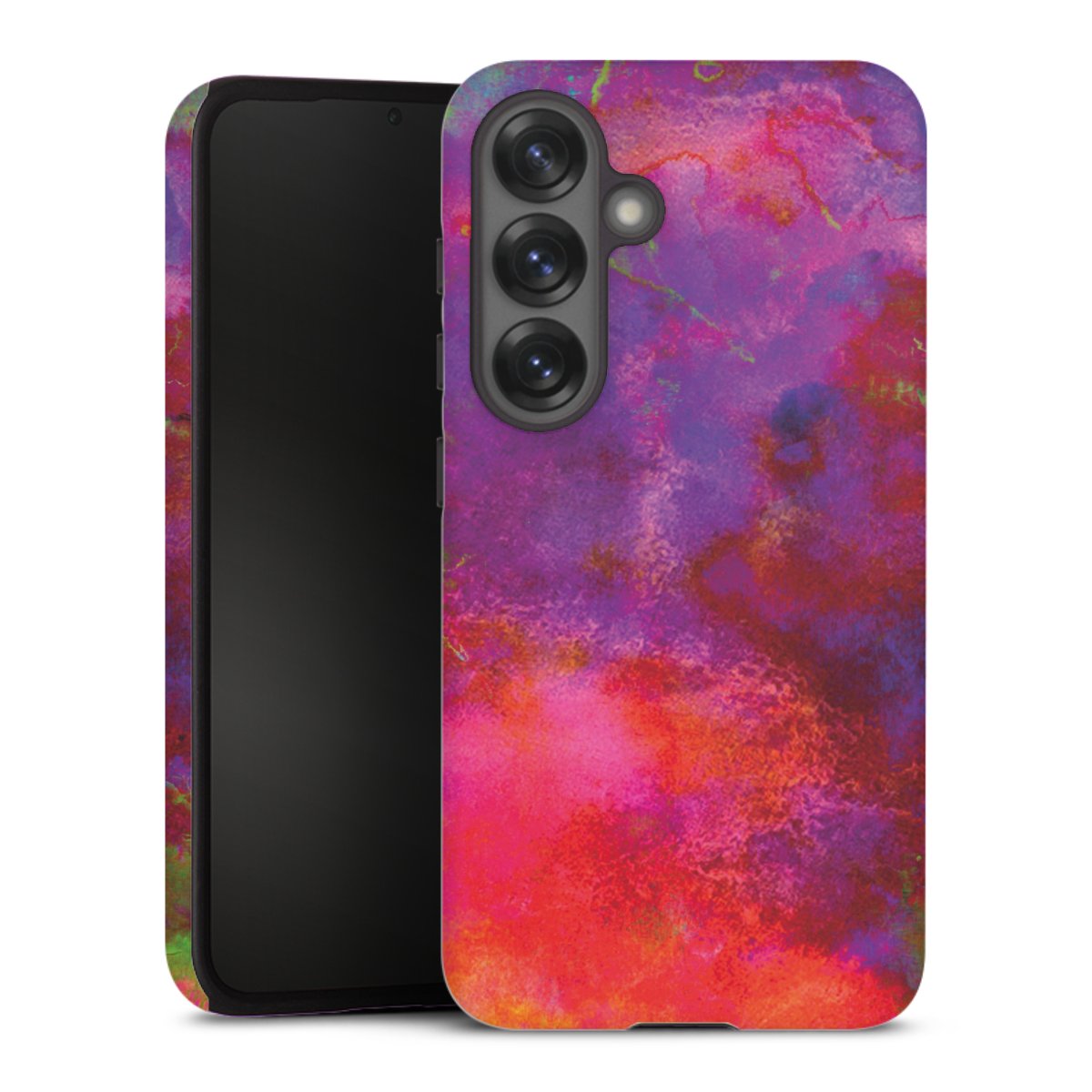 Bei dieser Handyhülle nutzen wird den besonders langlebigen Sublimationsdruck. Dieses raffinierte Druckverfahren sticht durch sein hochwertiges, gestochen scharfes Druckbild in brillanten Farben hervor. Der Druckbereich umfasst die ganze Hartschale inklusive der Ecken und Kanten, lediglich der Silikon-Einleger bleibt einfarbig schwarz. Wähle für Dein Design entweder eines unserer exklusiven Shop-Motive, oder werde kreativ und gestalte Dein Wunschdesign zum Beispiel mit Fotos und Overlays selbst.