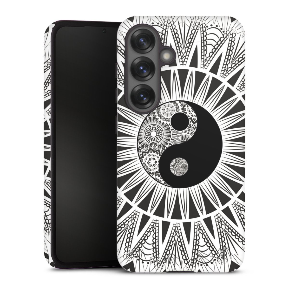Bei dieser Handyhülle nutzen wird den besonders langlebigen Sublimationsdruck. Dieses raffinierte Druckverfahren sticht durch sein hochwertiges, gestochen scharfes Druckbild in brillanten Farben hervor. Der Druckbereich umfasst die ganze Hartschale inklusive der Ecken und Kanten, lediglich der Silikon-Einleger bleibt einfarbig schwarz. Wähle für Dein Design entweder eines unserer exklusiven Shop-Motive, oder werde kreativ und gestalte Dein Wunschdesign zum Beispiel mit Fotos und Overlays selbst.