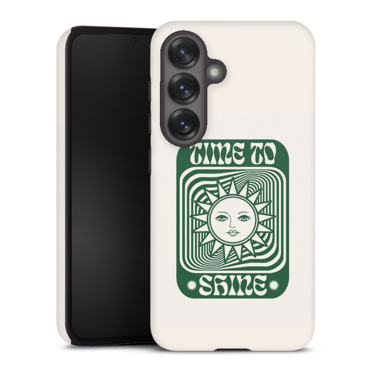 Bei dieser Handyhülle nutzen wird den besonders langlebigen Sublimationsdruck. Dieses raffinierte Druckverfahren sticht durch sein hochwertiges, gestochen scharfes Druckbild in brillanten Farben hervor. Der Druckbereich umfasst die ganze Hartschale inklusive der Ecken und Kanten, lediglich der Silikon-Einleger bleibt einfarbig schwarz. Wähle für Dein Design entweder eines unserer exklusiven Shop-Motive, oder werde kreativ und gestalte Dein Wunschdesign zum Beispiel mit Fotos und Overlays selbst.