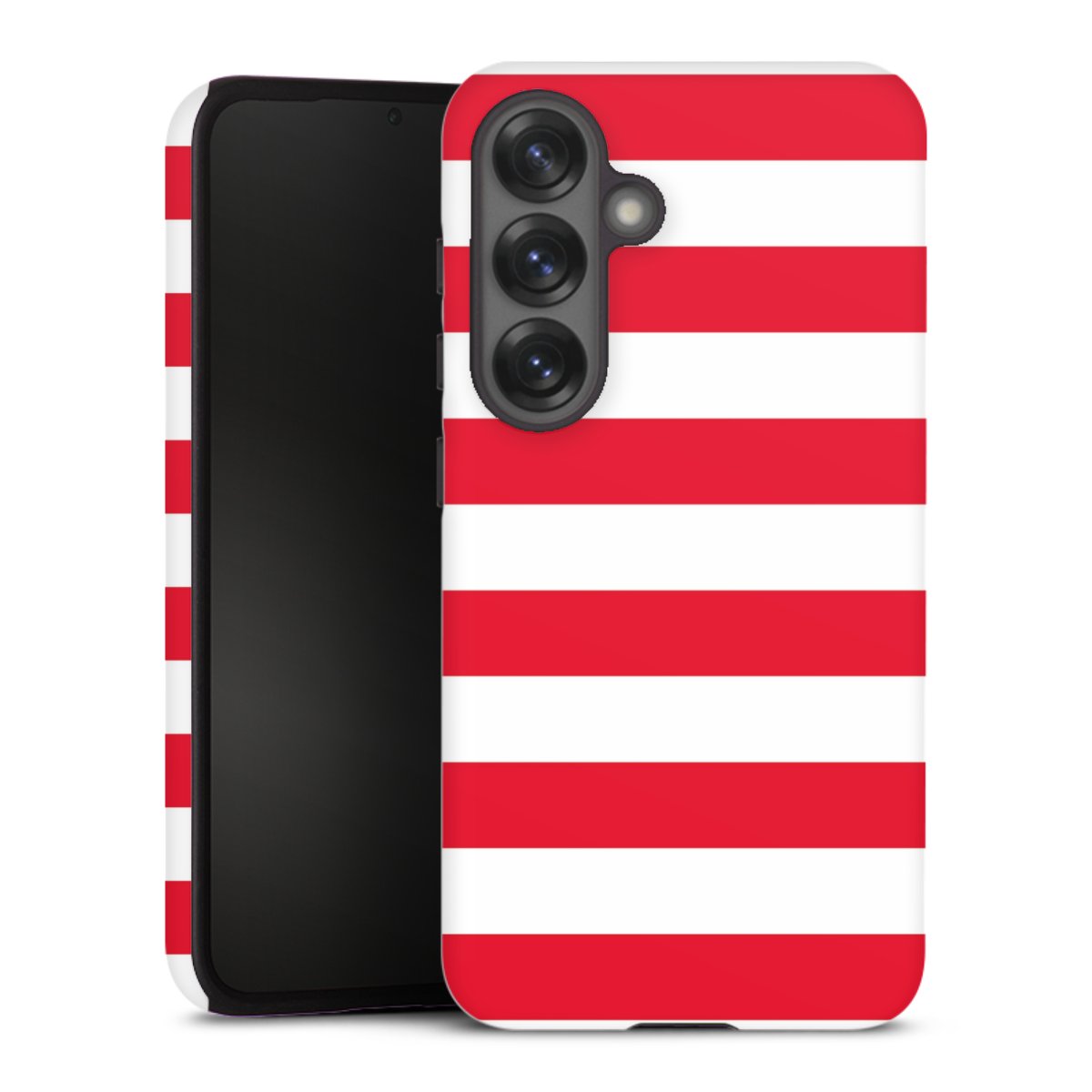 Unsere sicherste Schutzhülle vereint die Vorteile der Silikonhülle mit den Vorzügen des Premium Cases und besteht aus zwei Teilen: Innen federt der flexible Silikonkern aus robustem TPU (thermoplastisches Polyurethan) zuverlässig Stöße und Stürze ab, außen sorgt die widerstandsfähige und langlebige Hartschale aus Polycarbonat für zusätzliche Stabilität. Die Oberfläche der insgesamt 2,6 mm starken Hülle fühlt sich angenehm glatt an und macht das Tough Case zu einem echten Handschmeichler. Die Handyhülle ist in glänzend und matt erhältlich, der Silikoneinleger ist Schwarz.