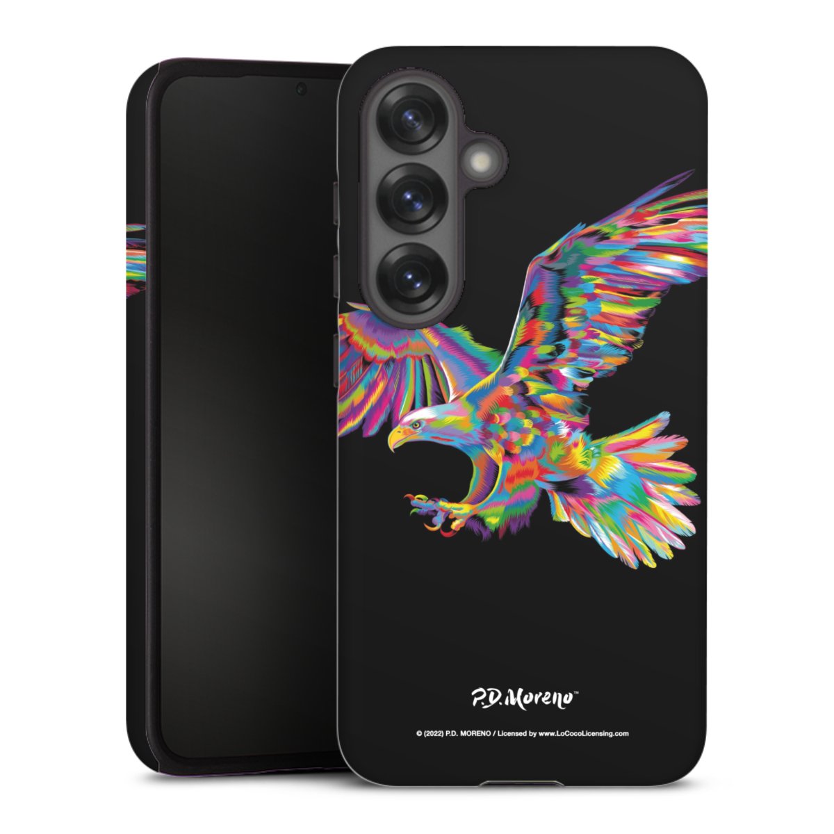 Bei dieser Handyhülle nutzen wird den besonders langlebigen Sublimationsdruck. Dieses raffinierte Druckverfahren sticht durch sein hochwertiges, gestochen scharfes Druckbild in brillanten Farben hervor. Der Druckbereich umfasst die ganze Hartschale inklusive der Ecken und Kanten, lediglich der Silikon-Einleger bleibt einfarbig schwarz. Wähle für Dein Design entweder eines unserer exklusiven Shop-Motive, oder werde kreativ und gestalte Dein Wunschdesign zum Beispiel mit Fotos und Overlays selbst.