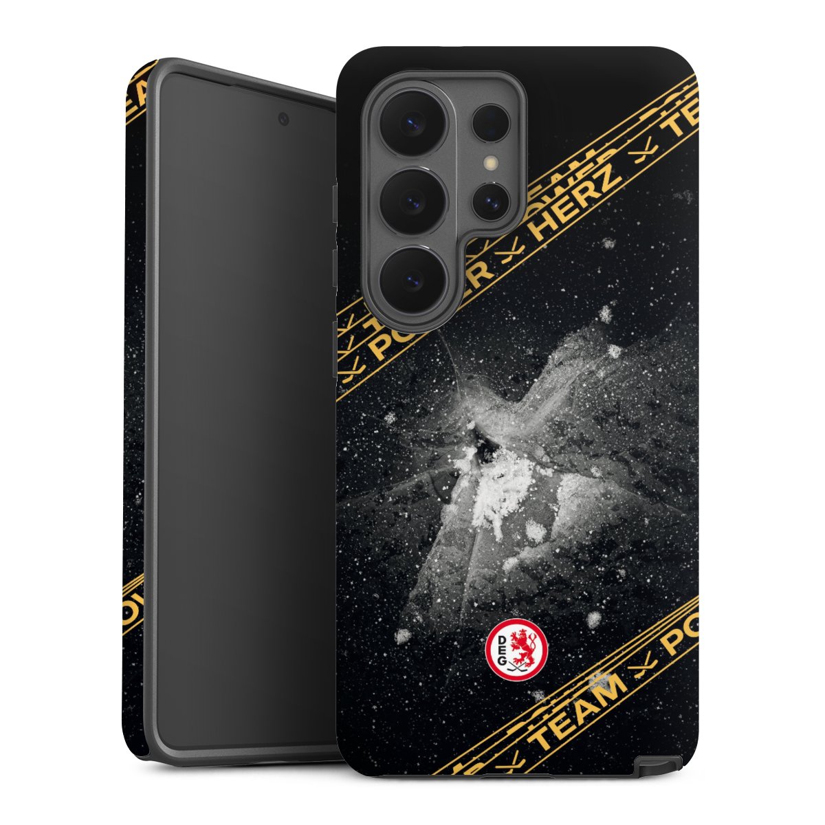 Unsere sicherste Schutzhülle vereint die Vorteile der Silikonhülle mit den Vorzügen des Premium Cases und besteht aus zwei Teilen: Innen federt der flexible Silikonkern aus robustem TPU (thermoplastisches Polyurethan) zuverlässig Stöße und Stürze ab, außen sorgt die widerstandsfähige und langlebige Hartschale aus Polycarbonat für zusätzliche Stabilität. Die Oberfläche der insgesamt 2,6 mm starken Hülle fühlt sich angenehm glatt an und macht das Tough Case zu einem echten Handschmeichler. Die Handyhülle ist in glänzend und matt erhältlich, der Silikoneinleger ist Schwarz.