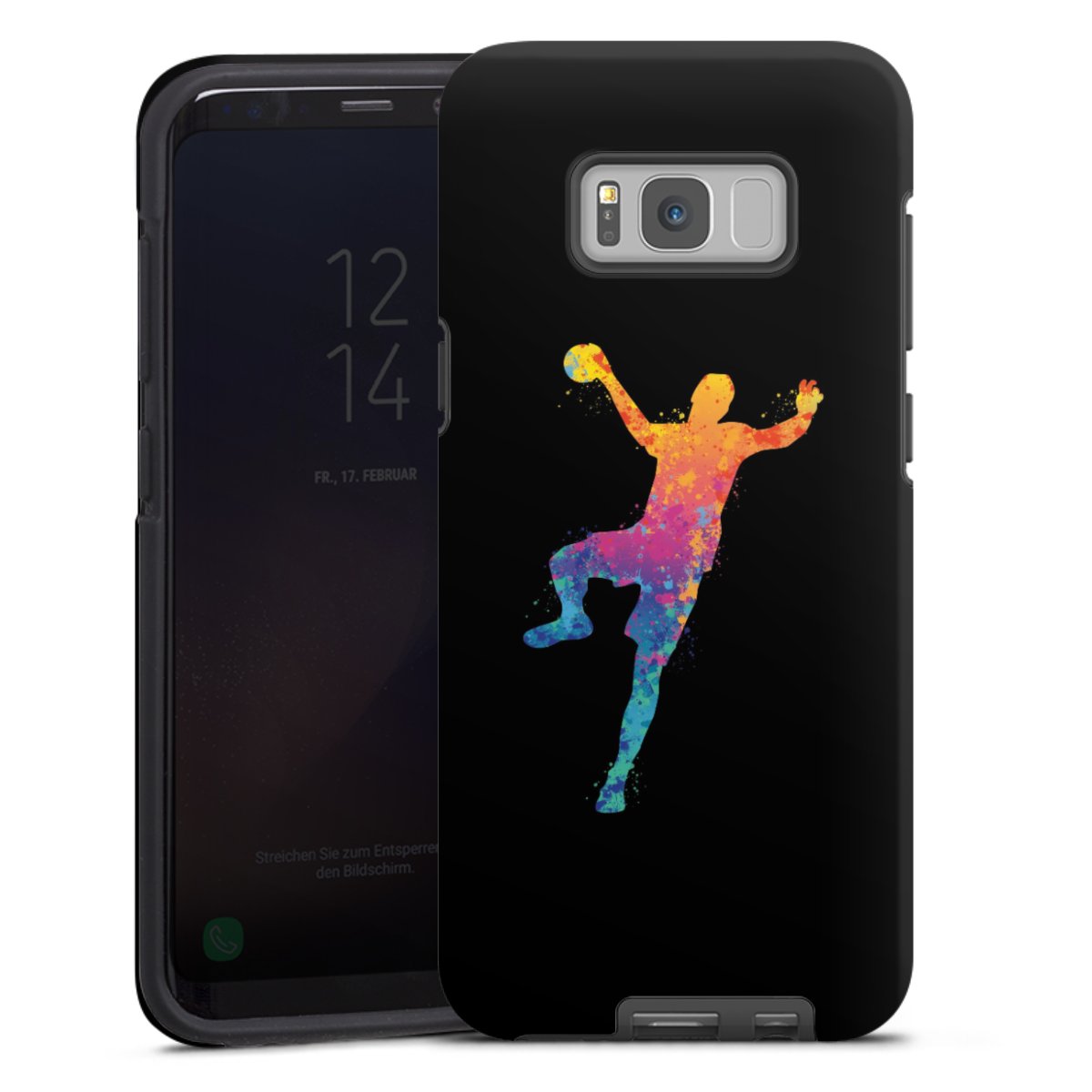 Bei dieser Handyhülle nutzen wird den besonders langlebigen Sublimationsdruck. Dieses raffinierte Druckverfahren sticht durch sein hochwertiges, gestochen scharfes Druckbild in brillanten Farben hervor. Der Druckbereich umfasst die ganze Hartschale inklusive der Ecken und Kanten, lediglich der Silikon-Einleger bleibt einfarbig schwarz. Wähle für Dein Design entweder eines unserer exklusiven Shop-Motive, oder werde kreativ und gestalte Dein Wunschdesign zum Beispiel mit Fotos und Overlays selbst.
