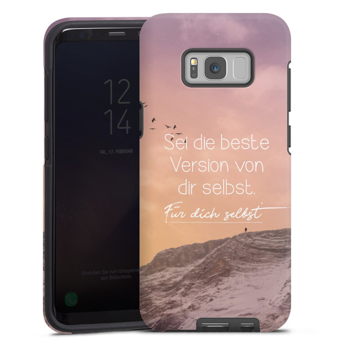 Bringe zuerst den Silikonkern an Dein Handy an, sodass alle Ecken umschlossen sind. Setze nun die Hartschale auf den Silikon-Einleger. Pflege-Tipp: Tough Cases lassen sich mit einem feuchten Tuch und mildem Reinigungsmittel säubern. Die glänzende Variante kannst du hin und wieder mit Glasreiniger einsprühen und mit einem Mikrofasertuch trocken polieren, damit sie so schön bleibt wie am Anfang.