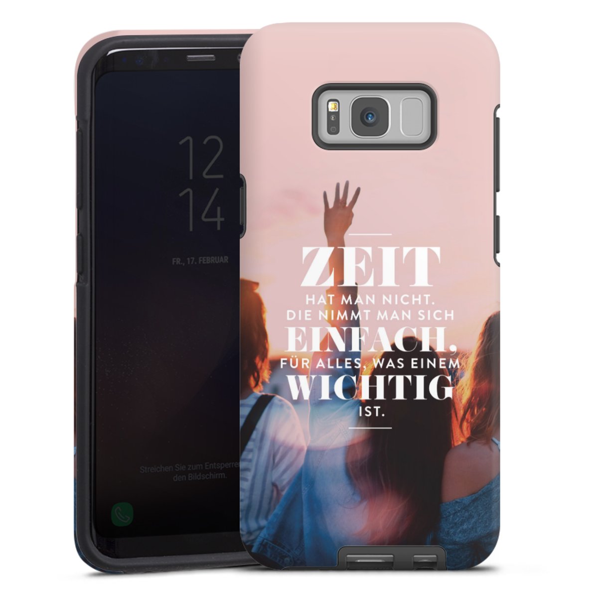 Bringe zuerst den Silikonkern an Dein Handy an, sodass alle Ecken umschlossen sind. Setze nun die Hartschale auf den Silikon-Einleger. Pflege-Tipp: Tough Cases lassen sich mit einem feuchten Tuch und mildem Reinigungsmittel säubern. Die glänzende Variante kannst du hin und wieder mit Glasreiniger einsprühen und mit einem Mikrofasertuch trocken polieren, damit sie so schön bleibt wie am Anfang.