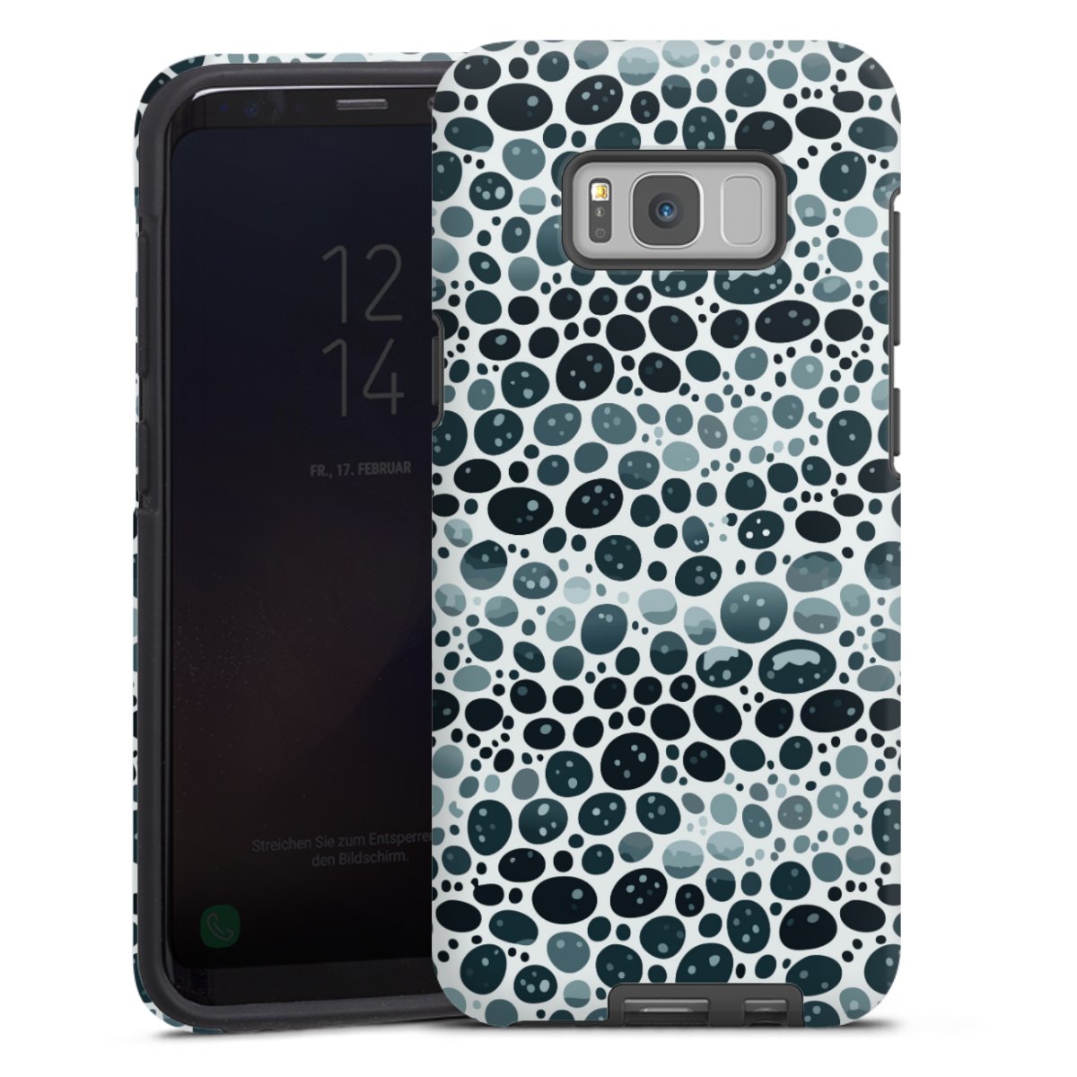 Bei dieser Handyhülle nutzen wird den besonders langlebigen Sublimationsdruck. Dieses raffinierte Druckverfahren sticht durch sein hochwertiges, gestochen scharfes Druckbild in brillanten Farben hervor. Der Druckbereich umfasst die ganze Hartschale inklusive der Ecken und Kanten, lediglich der Silikon-Einleger bleibt einfarbig schwarz. Wähle für Dein Design entweder eines unserer exklusiven Shop-Motive, oder werde kreativ und gestalte Dein Wunschdesign zum Beispiel mit Fotos und Overlays selbst.