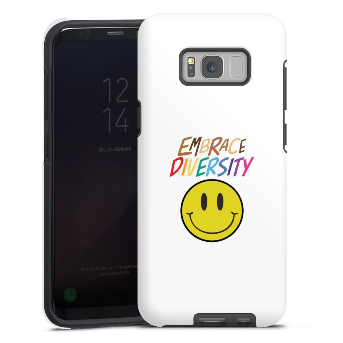 Bringe zuerst den Silikonkern an Dein Handy an, sodass alle Ecken umschlossen sind. Setze nun die Hartschale auf den Silikon-Einleger. Pflege-Tipp: Tough Cases lassen sich mit einem feuchten Tuch und mildem Reinigungsmittel säubern. Die glänzende Variante kannst du hin und wieder mit Glasreiniger einsprühen und mit einem Mikrofasertuch trocken polieren, damit sie so schön bleibt wie am Anfang.