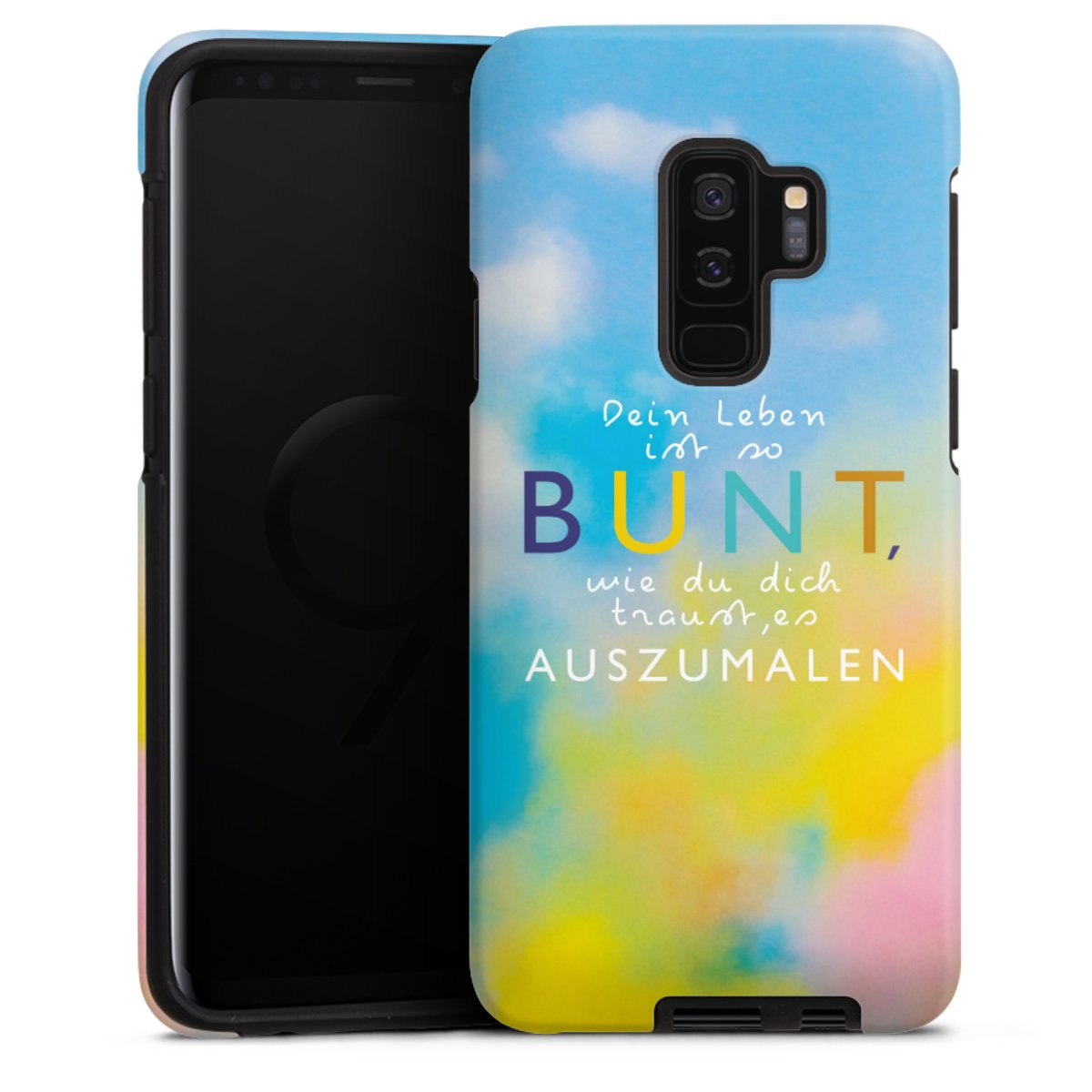 Bei dieser Handyhülle nutzen wird den besonders langlebigen Sublimationsdruck. Dieses raffinierte Druckverfahren sticht durch sein hochwertiges, gestochen scharfes Druckbild in brillanten Farben hervor. Der Druckbereich umfasst die ganze Hartschale inklusive der Ecken und Kanten, lediglich der Silikon-Einleger bleibt einfarbig schwarz. Wähle für Dein Design entweder eines unserer exklusiven Shop-Motive, oder werde kreativ und gestalte Dein Wunschdesign zum Beispiel mit Fotos und Overlays selbst.