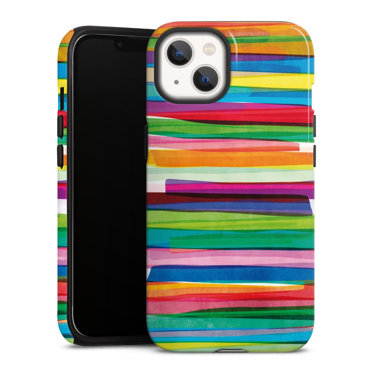 Unsere sicherste Schutzhülle vereint die Vorteile der Silikonhülle mit den Vorzügen des Premium Cases und besteht aus zwei Teilen: Innen federt der flexible Silikonkern aus robustem TPU (thermoplastisches Polyurethan) zuverlässig Stöße und Stürze ab, außen sorgt die widerstandsfähige und langlebige Hartschale aus Polycarbonat für zusätzliche Stabilität. Die Oberfläche der insgesamt 2,6 mm starken Hülle fühlt sich angenehm glatt an und macht das Tough Case zu einem echten Handschmeichler. Die Handyhülle ist in glänzend und matt erhältlich, der Silikoneinleger ist Schwarz.