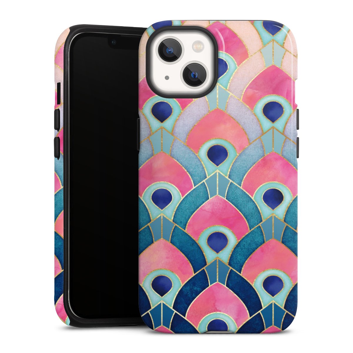 Bei dieser Handyhülle nutzen wird den besonders langlebigen Sublimationsdruck. Dieses raffinierte Druckverfahren sticht durch sein hochwertiges, gestochen scharfes Druckbild in brillanten Farben hervor. Der Druckbereich umfasst die ganze Hartschale inklusive der Ecken und Kanten, lediglich der Silikon-Einleger bleibt einfarbig schwarz. Wähle für Dein Design entweder eines unserer exklusiven Shop-Motive, oder werde kreativ und gestalte Dein Wunschdesign zum Beispiel mit Fotos und Overlays selbst.