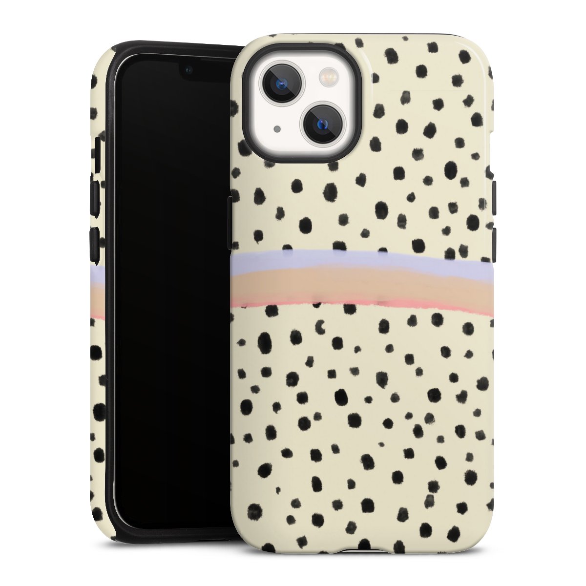 Bei dieser Handyhülle nutzen wird den besonders langlebigen Sublimationsdruck. Dieses raffinierte Druckverfahren sticht durch sein hochwertiges, gestochen scharfes Druckbild in brillanten Farben hervor. Der Druckbereich umfasst die ganze Hartschale inklusive der Ecken und Kanten, lediglich der Silikon-Einleger bleibt einfarbig schwarz. Wähle für Dein Design entweder eines unserer exklusiven Shop-Motive, oder werde kreativ und gestalte Dein Wunschdesign zum Beispiel mit Fotos und Overlays selbst.