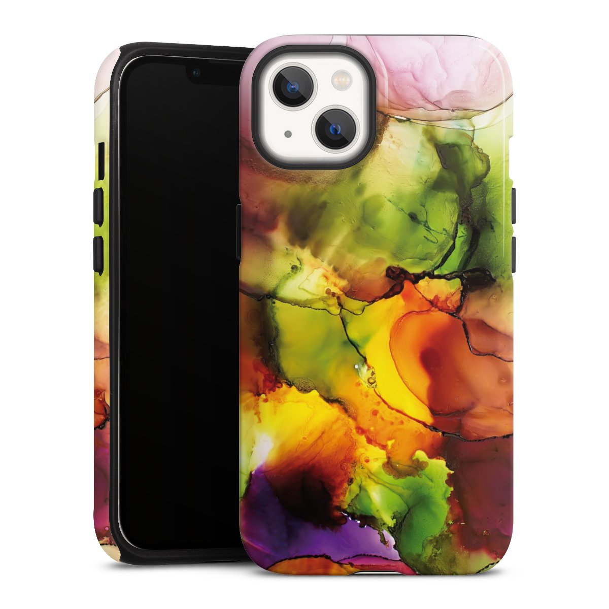 Bei dieser Handyhülle nutzen wird den besonders langlebigen Sublimationsdruck. Dieses raffinierte Druckverfahren sticht durch sein hochwertiges, gestochen scharfes Druckbild in brillanten Farben hervor. Der Druckbereich umfasst die ganze Hartschale inklusive der Ecken und Kanten, lediglich der Silikon-Einleger bleibt einfarbig schwarz. Wähle für Dein Design entweder eines unserer exklusiven Shop-Motive, oder werde kreativ und gestalte Dein Wunschdesign zum Beispiel mit Fotos und Overlays selbst.