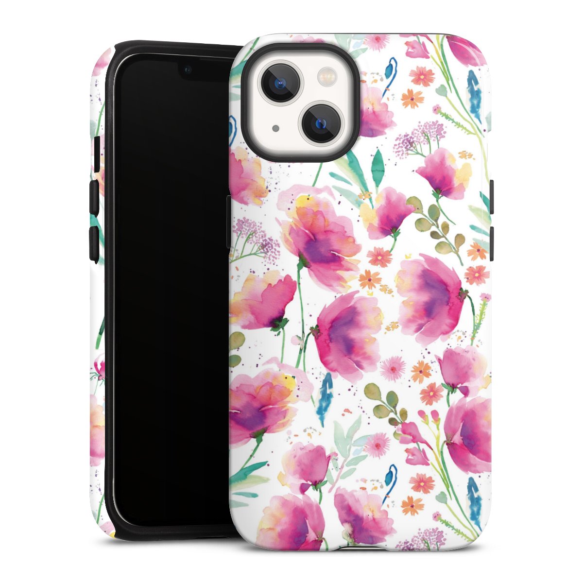 Unsere sicherste Schutzhülle vereint die Vorteile der Silikonhülle mit den Vorzügen des Premium Cases und besteht aus zwei Teilen: Innen federt der flexible Silikonkern aus robustem TPU (thermoplastisches Polyurethan) zuverlässig Stöße und Stürze ab, außen sorgt die widerstandsfähige und langlebige Hartschale aus Polycarbonat für zusätzliche Stabilität. Die Oberfläche der insgesamt 2,6 mm starken Hülle fühlt sich angenehm glatt an und macht das Tough Case zu einem echten Handschmeichler. Die Handyhülle ist in glänzend und matt erhältlich, der Silikoneinleger ist Schwarz.