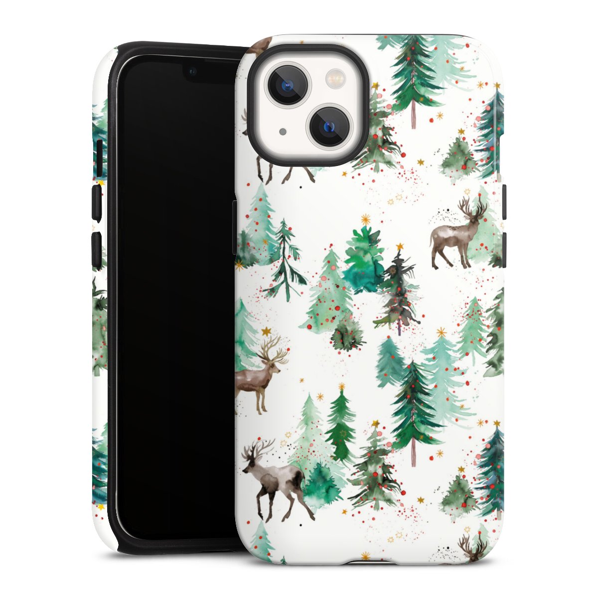 Hirsche und Winterweihnachtsbäume