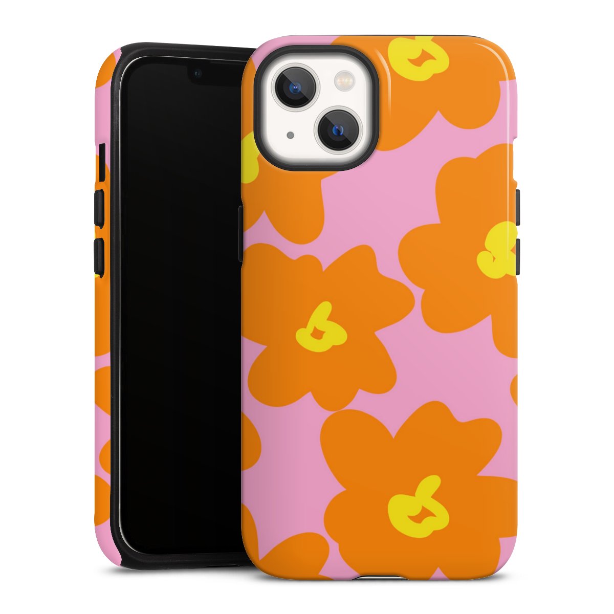 Retro Blumenmuster Pink und Orange