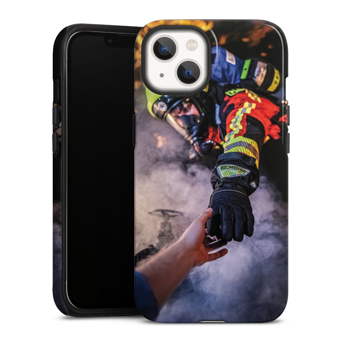 Feuerwehrmann greift nach der Hand