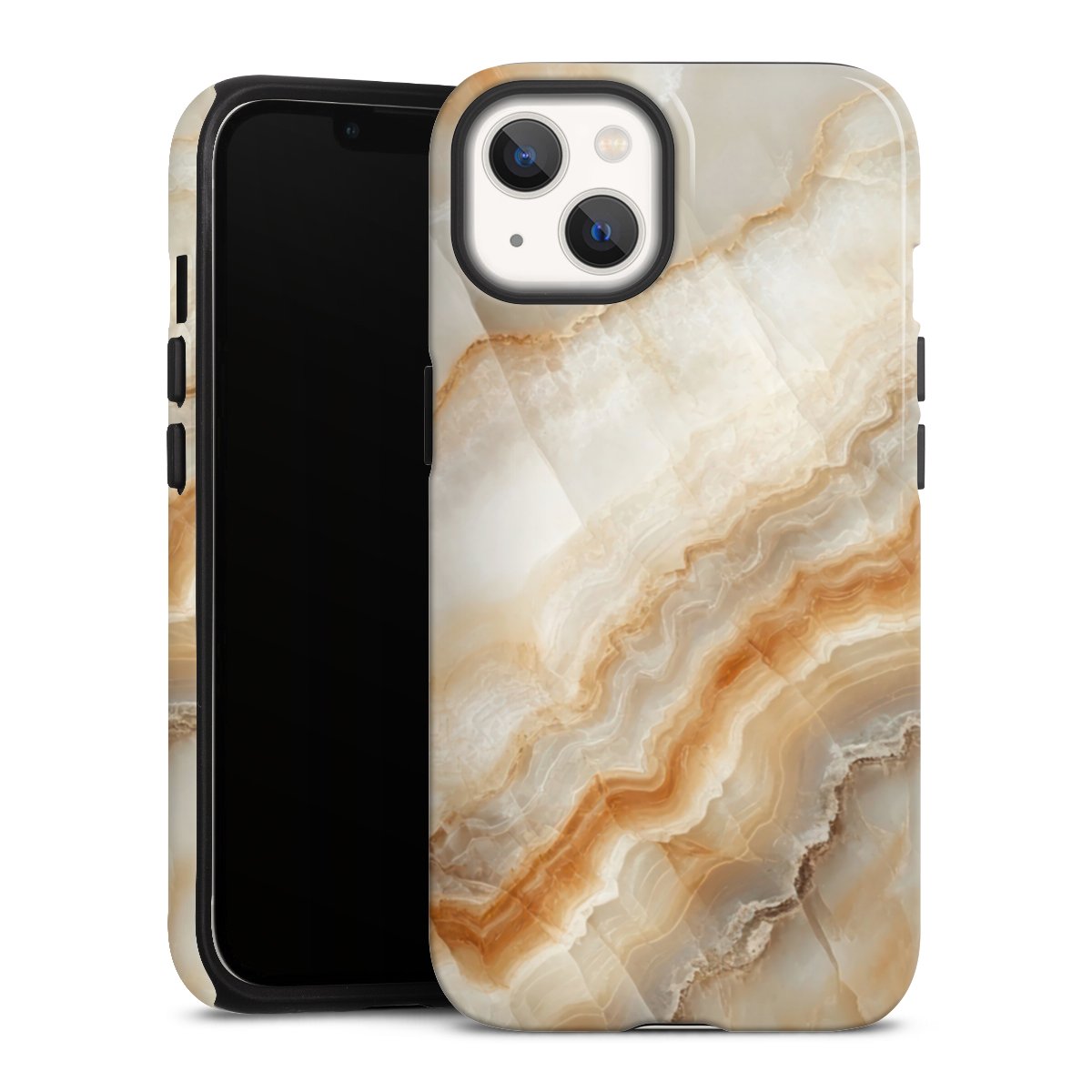 Unsere sicherste Schutzhülle vereint die Vorteile der Silikonhülle mit den Vorzügen des Premium Cases und besteht aus zwei Teilen: Innen federt der flexible Silikonkern aus robustem TPU (thermoplastisches Polyurethan) zuverlässig Stöße und Stürze ab, außen sorgt die widerstandsfähige und langlebige Hartschale aus Polycarbonat für zusätzliche Stabilität. Die Oberfläche der insgesamt 2,6 mm starken Hülle fühlt sich angenehm glatt an und macht das Tough Case zu einem echten Handschmeichler. Die Handyhülle ist in glänzend und matt erhältlich, der Silikoneinleger ist Schwarz.