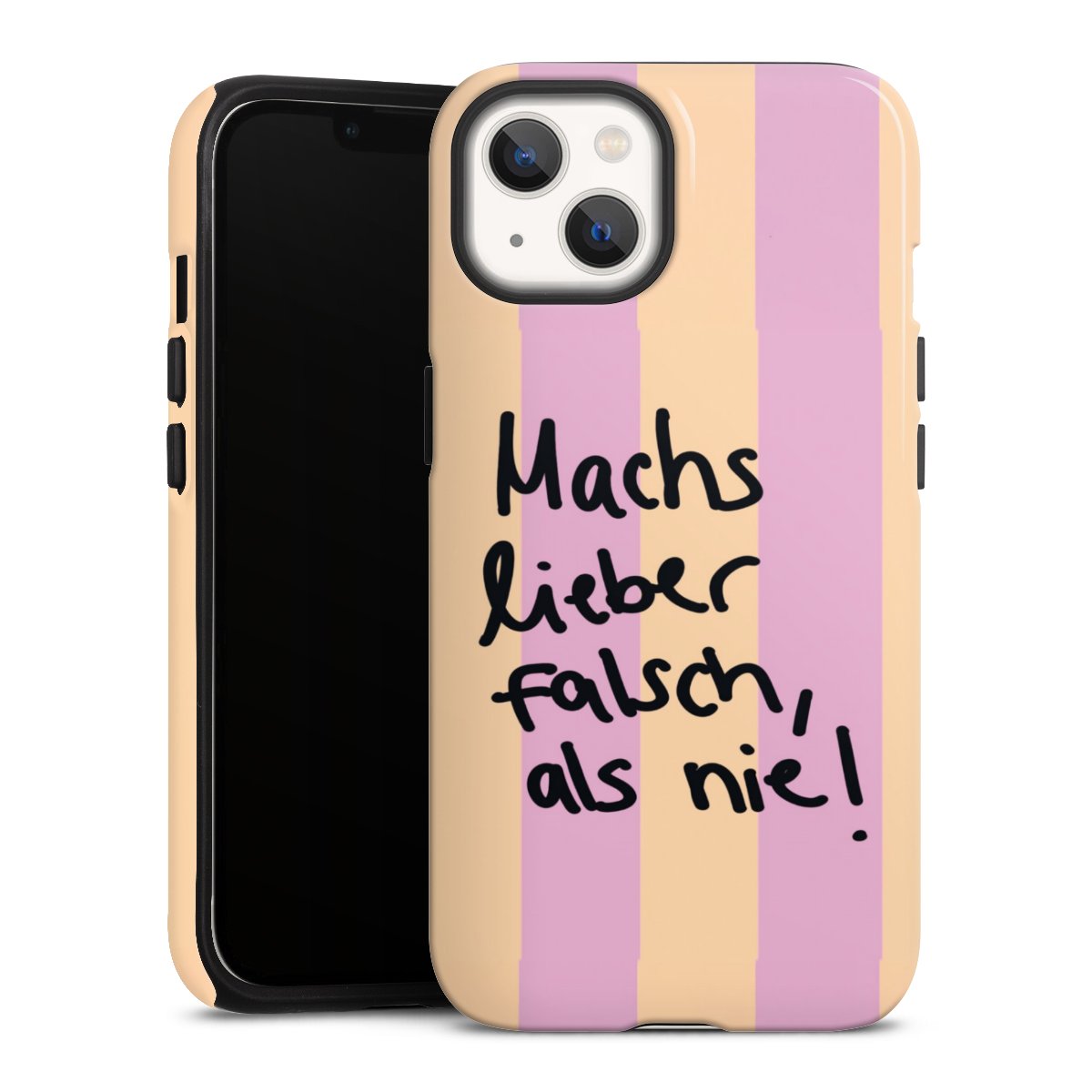 Unsere sicherste Schutzhülle vereint die Vorteile der Silikonhülle mit den Vorzügen des Premium Cases und besteht aus zwei Teilen: Innen federt der flexible Silikonkern aus robustem TPU (thermoplastisches Polyurethan) zuverlässig Stöße und Stürze ab, außen sorgt die widerstandsfähige und langlebige Hartschale aus Polycarbonat für zusätzliche Stabilität. Die Oberfläche der insgesamt 2,6 mm starken Hülle fühlt sich angenehm glatt an und macht das Tough Case zu einem echten Handschmeichler. Die Handyhülle ist in glänzend und matt erhältlich, der Silikoneinleger ist Schwarz.