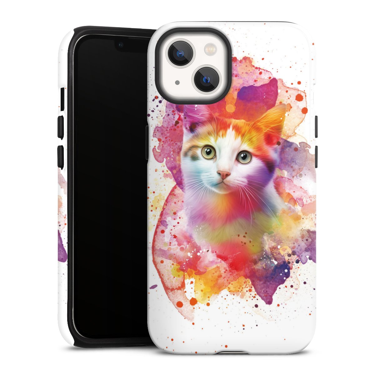 Bei dieser Handyhülle nutzen wird den besonders langlebigen Sublimationsdruck. Dieses raffinierte Druckverfahren sticht durch sein hochwertiges, gestochen scharfes Druckbild in brillanten Farben hervor. Der Druckbereich umfasst die ganze Hartschale inklusive der Ecken und Kanten, lediglich der Silikon-Einleger bleibt einfarbig schwarz. Wähle für Dein Design entweder eines unserer exklusiven Shop-Motive, oder werde kreativ und gestalte Dein Wunschdesign zum Beispiel mit Fotos und Overlays selbst.