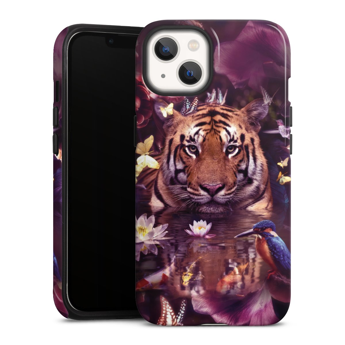 Bei dieser Handyhülle nutzen wird den besonders langlebigen Sublimationsdruck. Dieses raffinierte Druckverfahren sticht durch sein hochwertiges, gestochen scharfes Druckbild in brillanten Farben hervor. Der Druckbereich umfasst die ganze Hartschale inklusive der Ecken und Kanten, lediglich der Silikon-Einleger bleibt einfarbig schwarz. Wähle für Dein Design entweder eines unserer exklusiven Shop-Motive, oder werde kreativ und gestalte Dein Wunschdesign zum Beispiel mit Fotos und Overlays selbst.