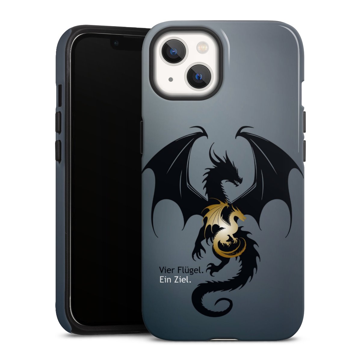 Unsere sicherste Schutzhülle vereint die Vorteile der Silikonhülle mit den Vorzügen des Premium Cases und besteht aus zwei Teilen: Innen federt der flexible Silikonkern aus robustem TPU (thermoplastisches Polyurethan) zuverlässig Stöße und Stürze ab, außen sorgt die widerstandsfähige und langlebige Hartschale aus Polycarbonat für zusätzliche Stabilität. Die Oberfläche der insgesamt 2,6 mm starken Hülle fühlt sich angenehm glatt an und macht das Tough Case zu einem echten Handschmeichler. Die Handyhülle ist in glänzend und matt erhältlich, der Silikoneinleger ist Schwarz.