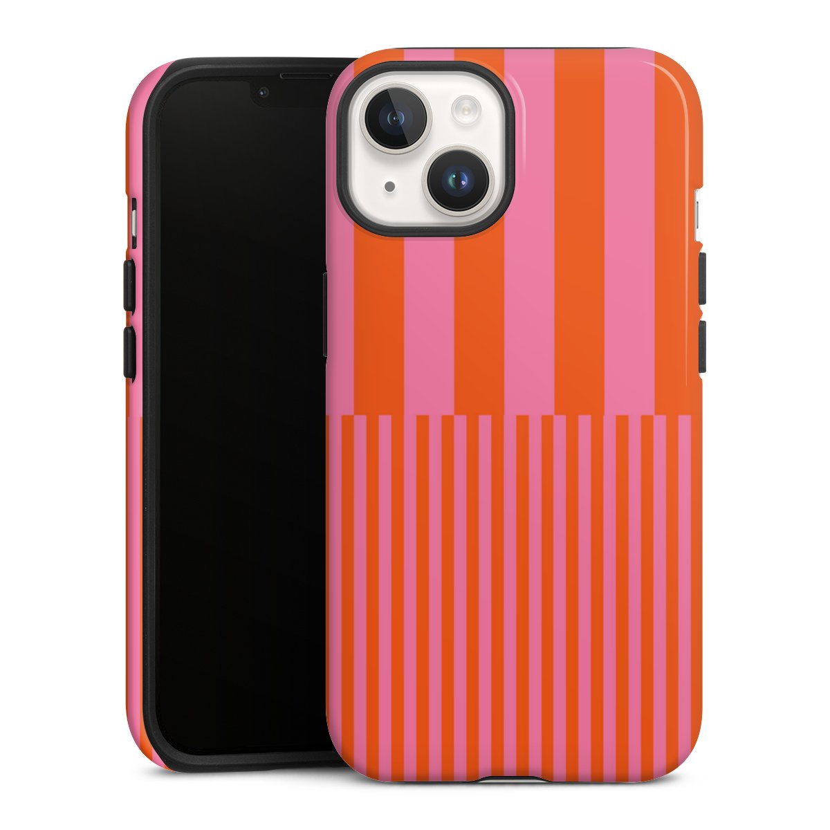 Unsere sicherste Schutzhülle vereint die Vorteile der Silikonhülle mit den Vorzügen des Premium Cases und besteht aus zwei Teilen: Innen federt der flexible Silikonkern aus robustem TPU (thermoplastisches Polyurethan) zuverlässig Stöße und Stürze ab, außen sorgt die widerstandsfähige und langlebige Hartschale aus Polycarbonat für zusätzliche Stabilität. Die Oberfläche der insgesamt 2,6 mm starken Hülle fühlt sich angenehm glatt an und macht das Tough Case zu einem echten Handschmeichler. Die Handyhülle ist in glänzend und matt erhältlich, der Silikoneinleger ist Schwarz.