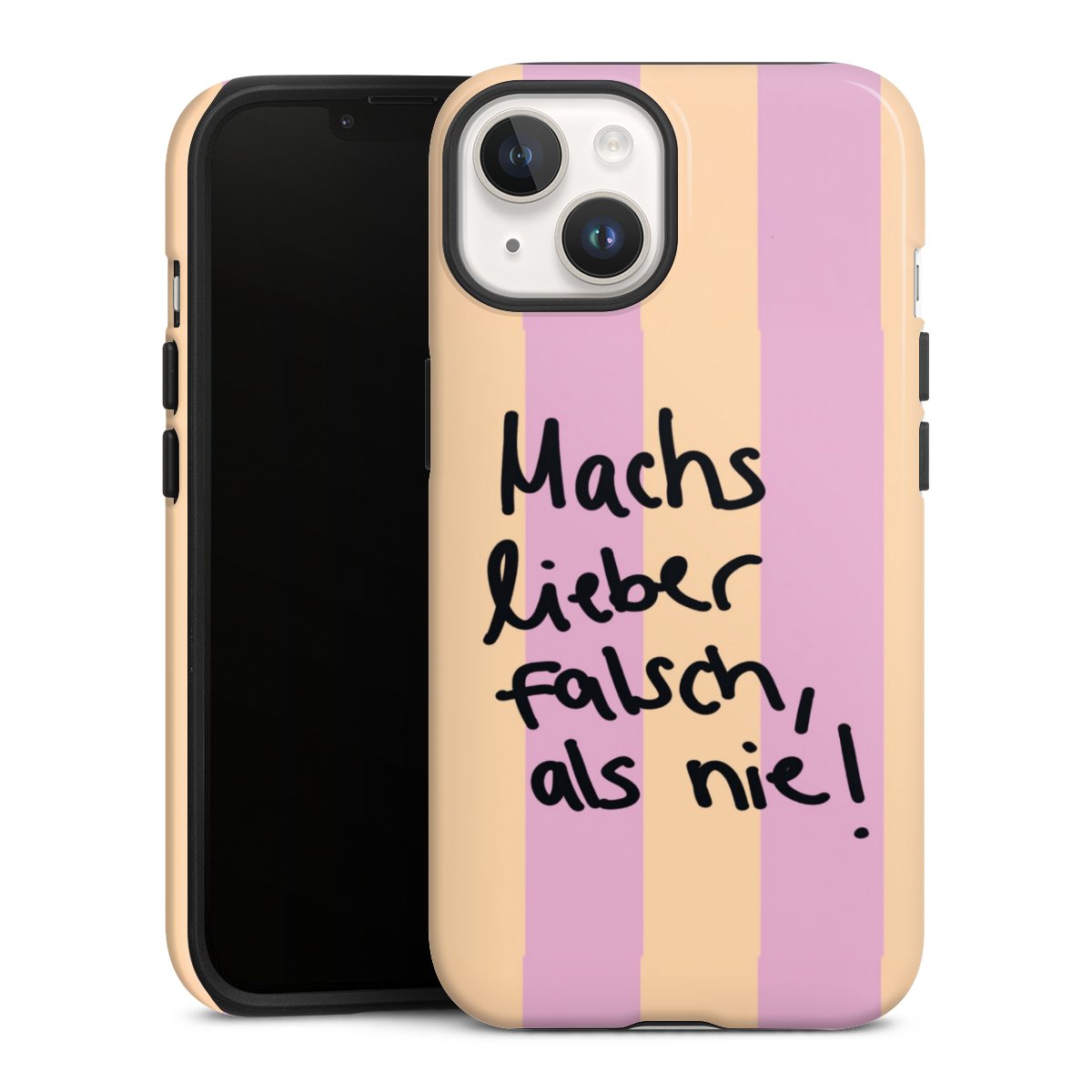 Bringe zuerst den Silikonkern an Dein Handy an, sodass alle Ecken umschlossen sind. Setze nun die Hartschale auf den Silikon-Einleger. Pflege-Tipp: Tough Cases lassen sich mit einem feuchten Tuch und mildem Reinigungsmittel säubern. Die glänzende Variante kannst du hin und wieder mit Glasreiniger einsprühen und mit einem Mikrofasertuch trocken polieren, damit sie so schön bleibt wie am Anfang.