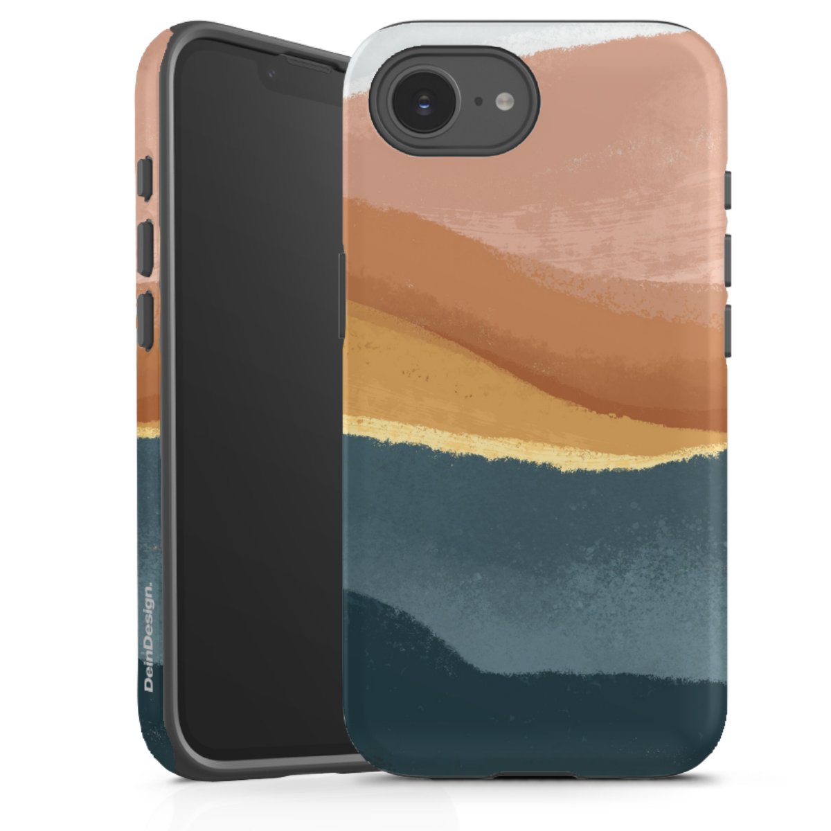 Unsere sicherste Schutzhülle vereint die Vorteile der Silikonhülle mit den Vorzügen des Premium Cases und besteht aus zwei Teilen: Innen federt der flexible Silikonkern aus robustem TPU (thermoplastisches Polyurethan) zuverlässig Stöße und Stürze ab, außen sorgt die widerstandsfähige und langlebige Hartschale aus Polycarbonat für zusätzliche Stabilität. Die Oberfläche der insgesamt 2,6 mm starken Hülle fühlt sich angenehm glatt an und macht das Tough Case zu einem echten Handschmeichler. Die Handyhülle ist in glänzend und matt erhältlich, der Silikoneinleger ist Schwarz.