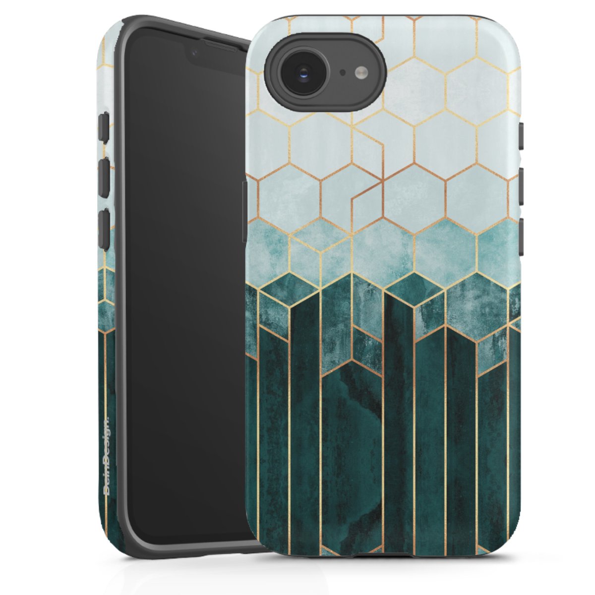 Unsere sicherste Schutzhülle vereint die Vorteile der Silikonhülle mit den Vorzügen des Premium Cases und besteht aus zwei Teilen: Innen federt der flexible Silikonkern aus robustem TPU (thermoplastisches Polyurethan) zuverlässig Stöße und Stürze ab, außen sorgt die widerstandsfähige und langlebige Hartschale aus Polycarbonat für zusätzliche Stabilität. Die Oberfläche der insgesamt 2,6 mm starken Hülle fühlt sich angenehm glatt an und macht das Tough Case zu einem echten Handschmeichler. Die Handyhülle ist in glänzend und matt erhältlich, der Silikoneinleger ist Schwarz.