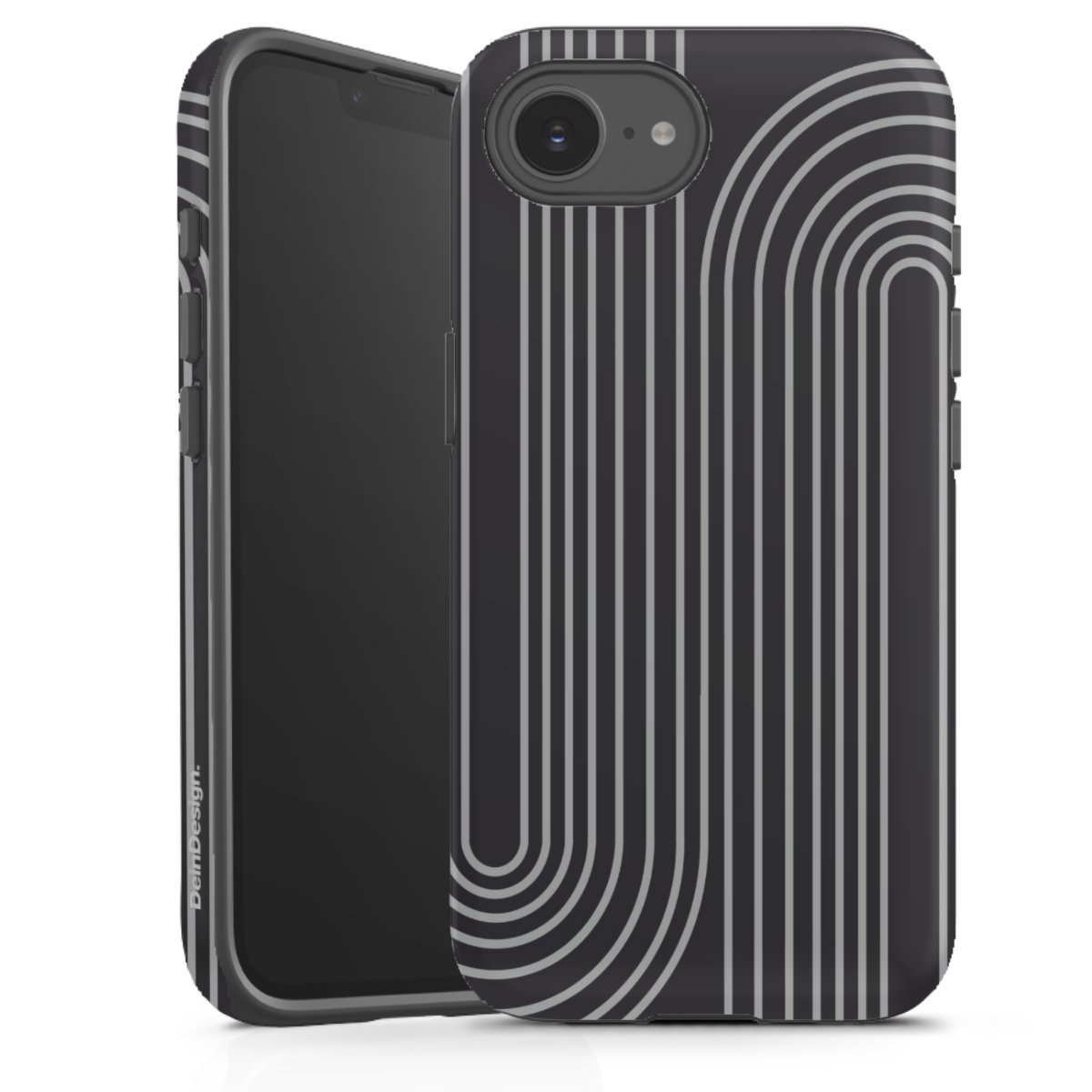 Unsere sicherste Schutzhülle vereint die Vorteile der Silikonhülle mit den Vorzügen des Premium Cases und besteht aus zwei Teilen: Innen federt der flexible Silikonkern aus robustem TPU (thermoplastisches Polyurethan) zuverlässig Stöße und Stürze ab, außen sorgt die widerstandsfähige und langlebige Hartschale aus Polycarbonat für zusätzliche Stabilität. Die Oberfläche der insgesamt 2,6 mm starken Hülle fühlt sich angenehm glatt an und macht das Tough Case zu einem echten Handschmeichler. Die Handyhülle ist in glänzend und matt erhältlich, der Silikoneinleger ist Schwarz.