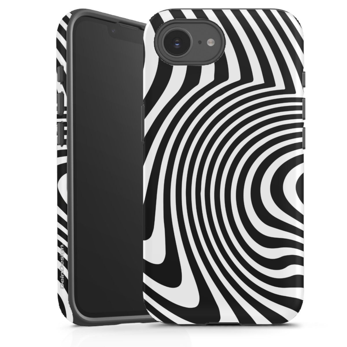 Bei dieser Handyhülle nutzen wird den besonders langlebigen Sublimationsdruck. Dieses raffinierte Druckverfahren sticht durch sein hochwertiges, gestochen scharfes Druckbild in brillanten Farben hervor. Der Druckbereich umfasst die ganze Hartschale inklusive der Ecken und Kanten, lediglich der Silikon-Einleger bleibt einfarbig schwarz. Wähle für Dein Design entweder eines unserer exklusiven Shop-Motive, oder werde kreativ und gestalte Dein Wunschdesign zum Beispiel mit Fotos und Overlays selbst.