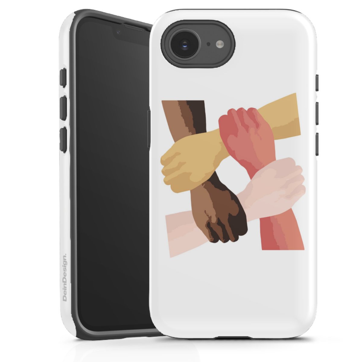 Unsere sicherste Schutzhülle vereint die Vorteile der Silikonhülle mit den Vorzügen des Premium Cases und besteht aus zwei Teilen: Innen federt der flexible Silikonkern aus robustem TPU (thermoplastisches Polyurethan) zuverlässig Stöße und Stürze ab, außen sorgt die widerstandsfähige und langlebige Hartschale aus Polycarbonat für zusätzliche Stabilität. Die Oberfläche der insgesamt 2,6 mm starken Hülle fühlt sich angenehm glatt an und macht das Tough Case zu einem echten Handschmeichler. Die Handyhülle ist in glänzend und matt erhältlich, der Silikoneinleger ist Schwarz.