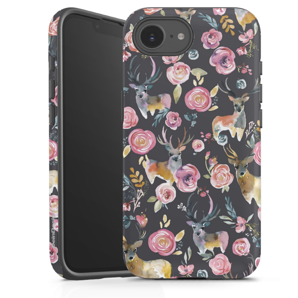 Hirsche und Blumen Anthrazit