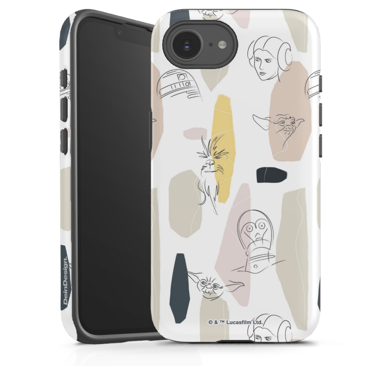 Darth Vader, C3PO, R2D2 und Meister Yoda findest Du in unserem Star Wars Shop auf DeinDesign. Natürlich gibt es auch Star Wars Handyhüllen mit den legendären Charakteren Luke Skywalker, Prinzessin Leia und Han Solo, den Helden der ersten Saga. Wer jedoch die Hauptfiguren der neuen Star Wars Filme ins Herz geschlossen hat, kann auch Finn und Rey mit ihren mächtigen Waffen auf der Rückseite seines Smartphones haben. Die vielseitigen Schutzhüllen in verschiedenen Ausführungen sind das perfekte Geschenk für alle Star Wars Fans, die ihrem Smartphone eine individuelle Note verleihen wollen.