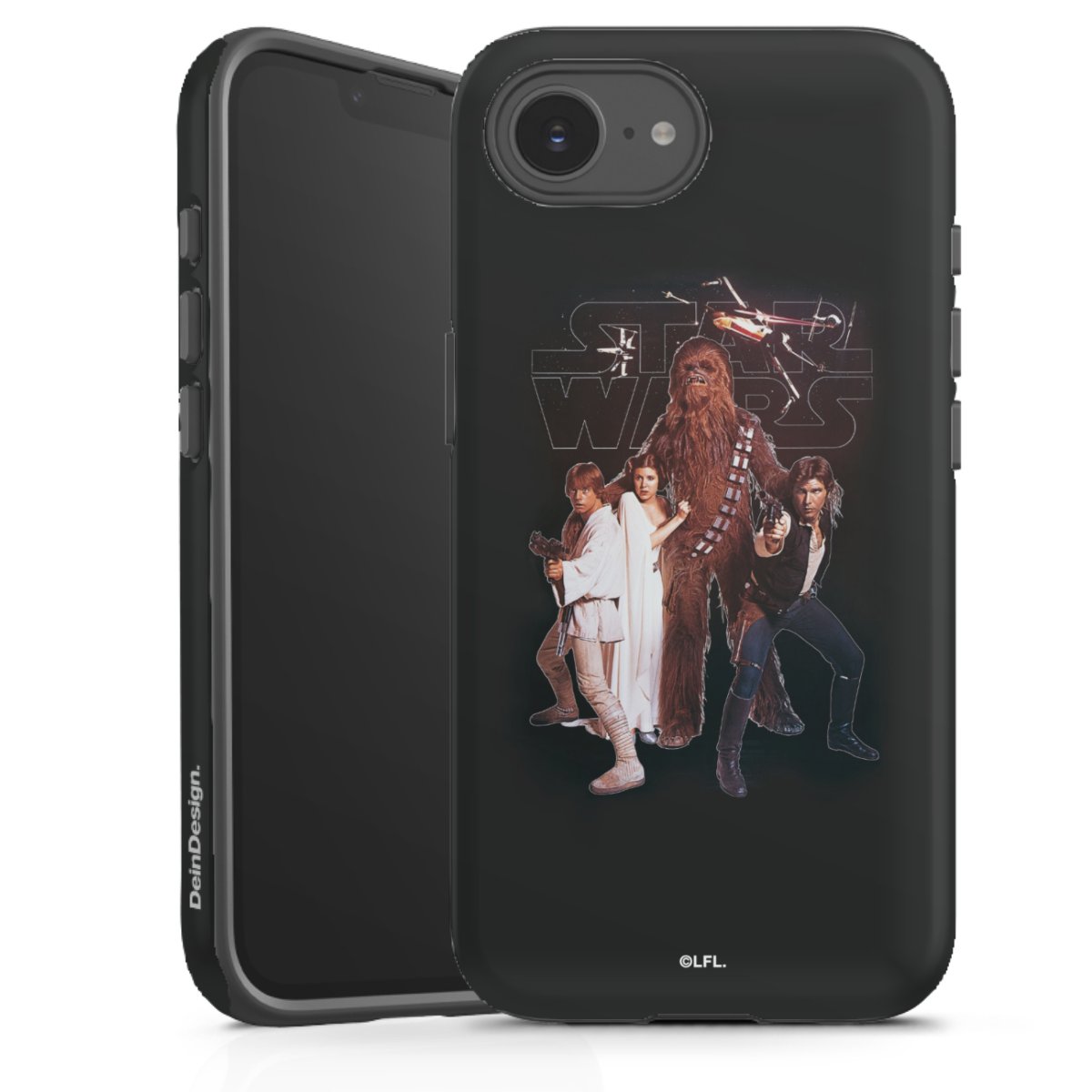 Darth Vader, C3PO, R2D2 und Meister Yoda findest Du in unserem Star Wars Shop auf DeinDesign. Natürlich gibt es auch Star Wars Handyhüllen mit den legendären Charakteren Luke Skywalker, Prinzessin Leia und Han Solo, den Helden der ersten Saga. Wer jedoch die Hauptfiguren der neuen Star Wars Filme ins Herz geschlossen hat, kann auch Finn und Rey mit ihren mächtigen Waffen auf der Rückseite seines Smartphones haben. Die vielseitigen Schutzhüllen in verschiedenen Ausführungen sind das perfekte Geschenk für alle Star Wars Fans, die ihrem Smartphone eine individuelle Note verleihen wollen.