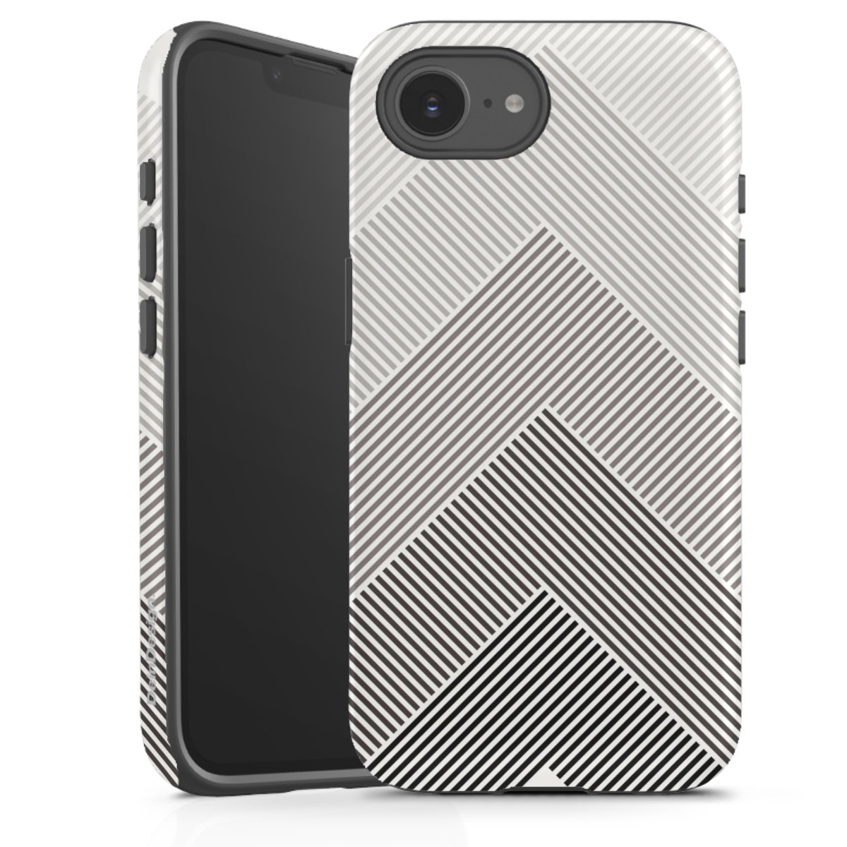 Unsere sicherste Schutzhülle vereint die Vorteile der Silikonhülle mit den Vorzügen des Premium Cases und besteht aus zwei Teilen: Innen federt der flexible Silikonkern aus robustem TPU (thermoplastisches Polyurethan) zuverlässig Stöße und Stürze ab, außen sorgt die widerstandsfähige und langlebige Hartschale aus Polycarbonat für zusätzliche Stabilität. Die Oberfläche der insgesamt 2,6 mm starken Hülle fühlt sich angenehm glatt an und macht das Tough Case zu einem echten Handschmeichler. Die Handyhülle ist in glänzend und matt erhältlich, der Silikoneinleger ist Schwarz.