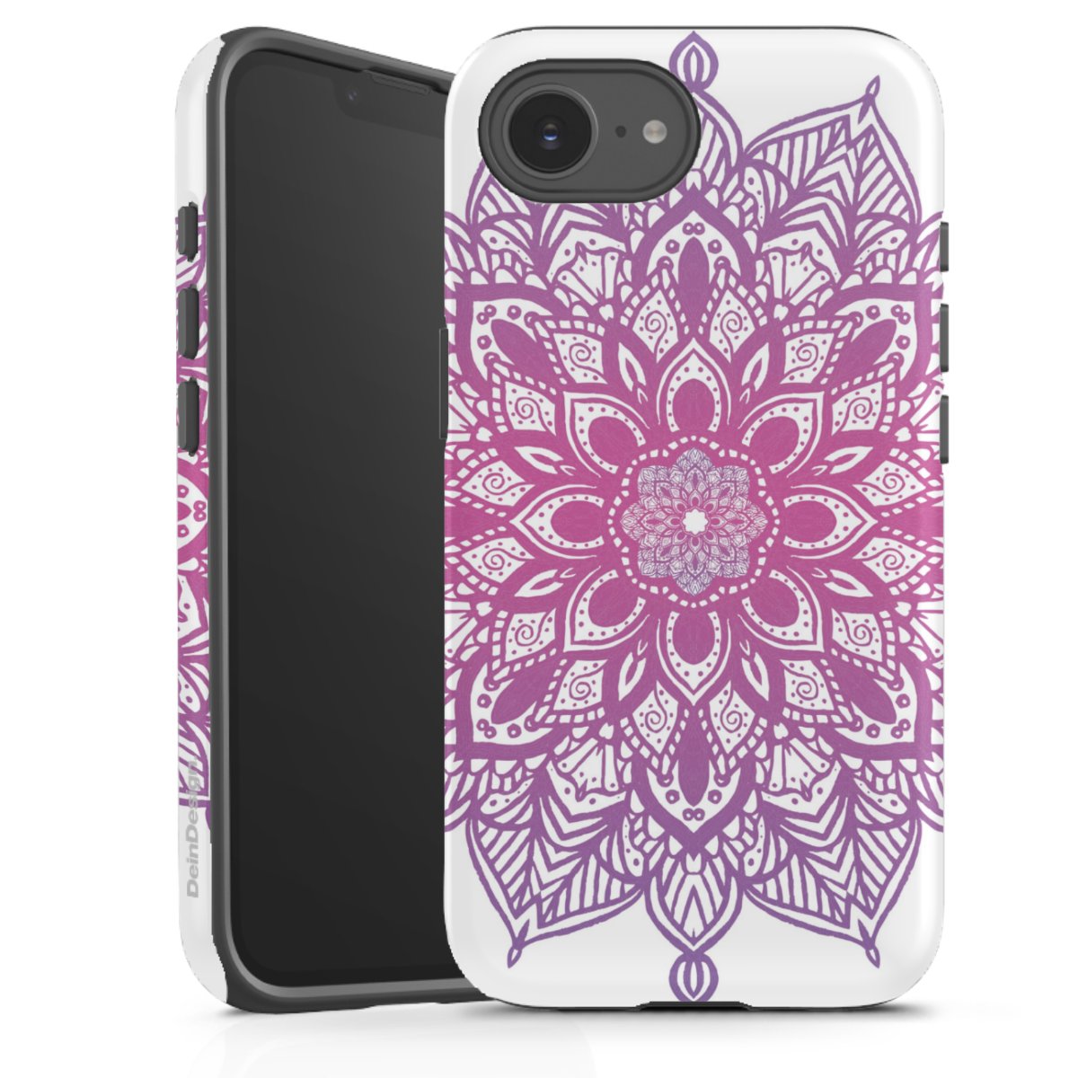 Bei dieser Handyhülle nutzen wird den besonders langlebigen Sublimationsdruck. Dieses raffinierte Druckverfahren sticht durch sein hochwertiges, gestochen scharfes Druckbild in brillanten Farben hervor. Der Druckbereich umfasst die ganze Hartschale inklusive der Ecken und Kanten, lediglich der Silikon-Einleger bleibt einfarbig schwarz. Wähle für Dein Design entweder eines unserer exklusiven Shop-Motive, oder werde kreativ und gestalte Dein Wunschdesign zum Beispiel mit Fotos und Overlays selbst.