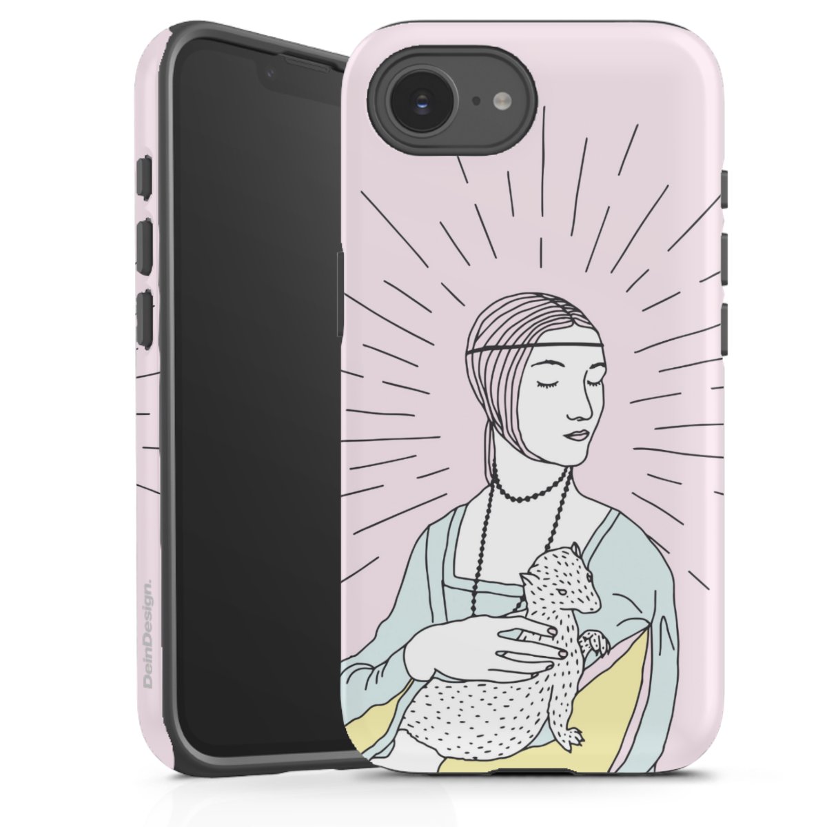 Bei dieser Handyhülle nutzen wird den besonders langlebigen Sublimationsdruck. Dieses raffinierte Druckverfahren sticht durch sein hochwertiges, gestochen scharfes Druckbild in brillanten Farben hervor. Der Druckbereich umfasst die ganze Hartschale inklusive der Ecken und Kanten, lediglich der Silikon-Einleger bleibt einfarbig schwarz. Wähle für Dein Design entweder eines unserer exklusiven Shop-Motive, oder werde kreativ und gestalte Dein Wunschdesign zum Beispiel mit Fotos und Overlays selbst.