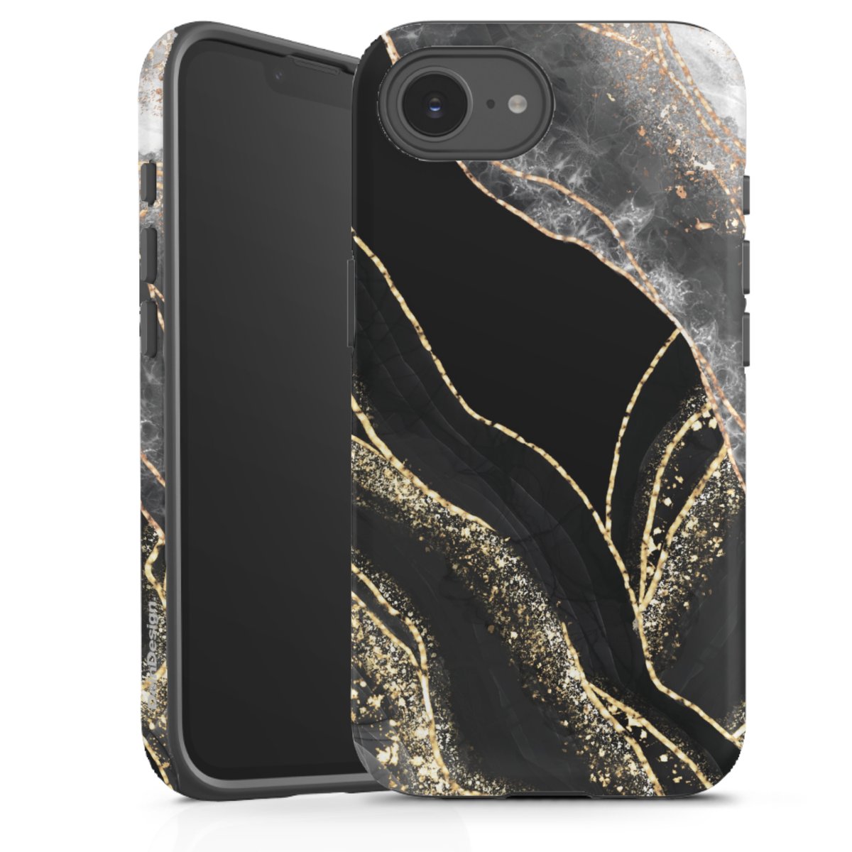 Unsere sicherste Schutzhülle vereint die Vorteile der Silikonhülle mit den Vorzügen des Premium Cases und besteht aus zwei Teilen: Innen federt der flexible Silikonkern aus robustem TPU (thermoplastisches Polyurethan) zuverlässig Stöße und Stürze ab, außen sorgt die widerstandsfähige und langlebige Hartschale aus Polycarbonat für zusätzliche Stabilität. Die Oberfläche der insgesamt 2,6 mm starken Hülle fühlt sich angenehm glatt an und macht das Tough Case zu einem echten Handschmeichler. Die Handyhülle ist in glänzend und matt erhältlich, der Silikoneinleger ist Schwarz.