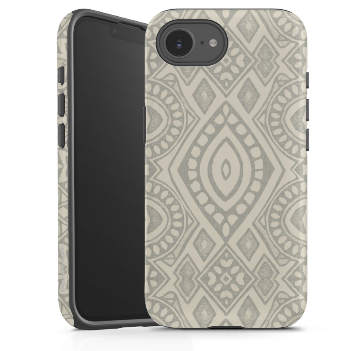 Boho Geometric Mosaic Pattern Neutral Grey and Beige