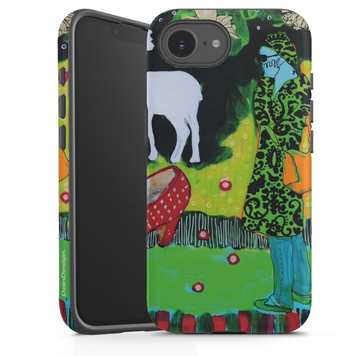 Bei dieser Handyhülle nutzen wird den besonders langlebigen Sublimationsdruck. Dieses raffinierte Druckverfahren sticht durch sein hochwertiges, gestochen scharfes Druckbild in brillanten Farben hervor. Der Druckbereich umfasst die ganze Hartschale inklusive der Ecken und Kanten, lediglich der Silikon-Einleger bleibt einfarbig schwarz. Wähle für Dein Design entweder eines unserer exklusiven Shop-Motive, oder werde kreativ und gestalte Dein Wunschdesign zum Beispiel mit Fotos und Overlays selbst.