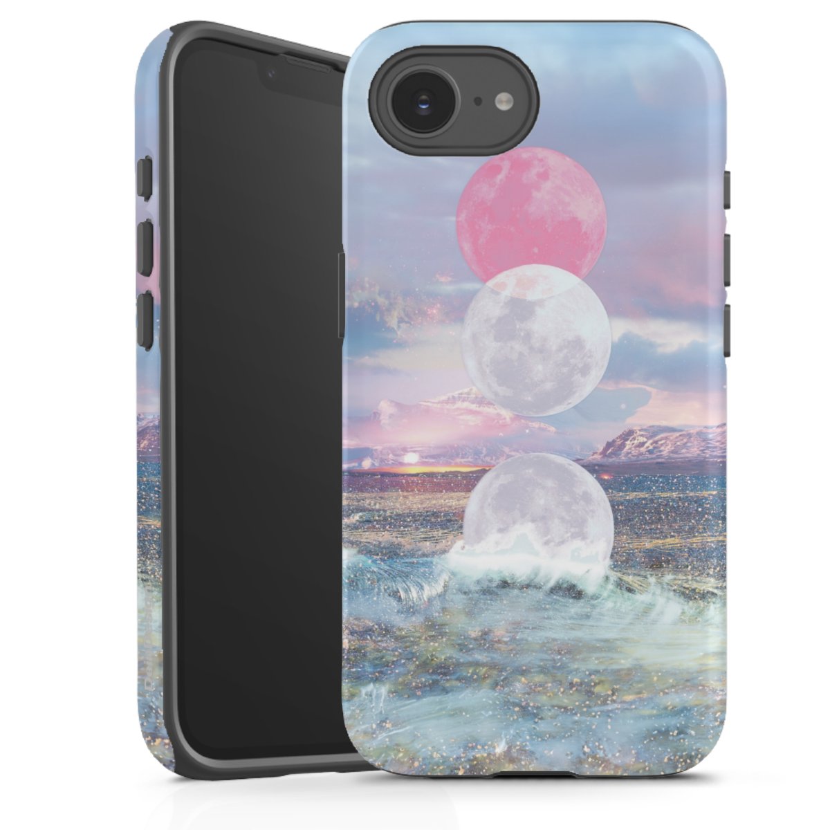 Bei dieser Handyhülle nutzen wird den besonders langlebigen Sublimationsdruck. Dieses raffinierte Druckverfahren sticht durch sein hochwertiges, gestochen scharfes Druckbild in brillanten Farben hervor. Der Druckbereich umfasst die ganze Hartschale inklusive der Ecken und Kanten, lediglich der Silikon-Einleger bleibt einfarbig schwarz. Wähle für Dein Design entweder eines unserer exklusiven Shop-Motive, oder werde kreativ und gestalte Dein Wunschdesign zum Beispiel mit Fotos und Overlays selbst.