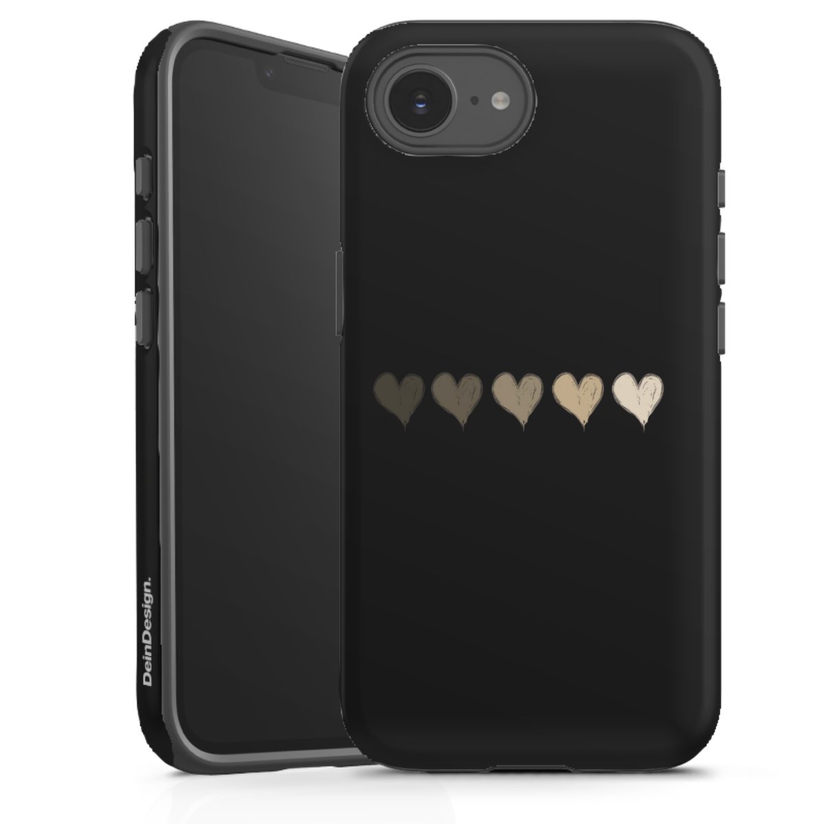 Bei dieser Handyhülle nutzen wird den besonders langlebigen Sublimationsdruck. Dieses raffinierte Druckverfahren sticht durch sein hochwertiges, gestochen scharfes Druckbild in brillanten Farben hervor. Der Druckbereich umfasst die ganze Hartschale inklusive der Ecken und Kanten, lediglich der Silikon-Einleger bleibt einfarbig schwarz. Wähle für Dein Design entweder eines unserer exklusiven Shop-Motive, oder werde kreativ und gestalte Dein Wunschdesign zum Beispiel mit Fotos und Overlays selbst.