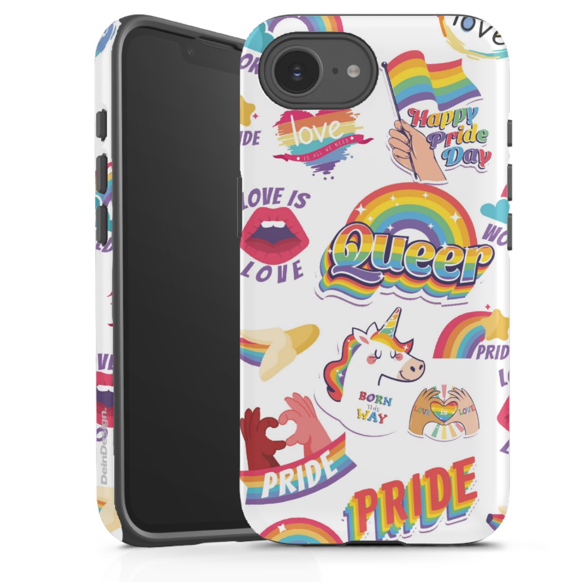 Bei dieser Handyhülle nutzen wird den besonders langlebigen Sublimationsdruck. Dieses raffinierte Druckverfahren sticht durch sein hochwertiges, gestochen scharfes Druckbild in brillanten Farben hervor. Der Druckbereich umfasst die ganze Hartschale inklusive der Ecken und Kanten, lediglich der Silikon-Einleger bleibt einfarbig schwarz. Wähle für Dein Design entweder eines unserer exklusiven Shop-Motive, oder werde kreativ und gestalte Dein Wunschdesign zum Beispiel mit Fotos und Overlays selbst.