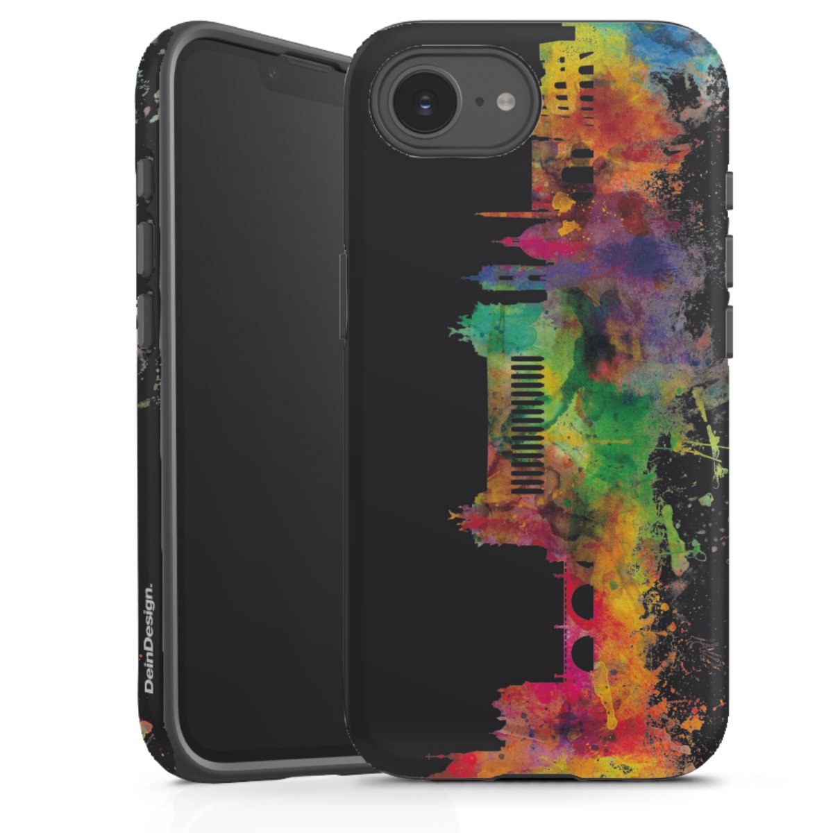 Bei dieser Handyhülle nutzen wird den besonders langlebigen Sublimationsdruck. Dieses raffinierte Druckverfahren sticht durch sein hochwertiges, gestochen scharfes Druckbild in brillanten Farben hervor. Der Druckbereich umfasst die ganze Hartschale inklusive der Ecken und Kanten, lediglich der Silikon-Einleger bleibt einfarbig schwarz. Wähle für Dein Design entweder eines unserer exklusiven Shop-Motive, oder werde kreativ und gestalte Dein Wunschdesign zum Beispiel mit Fotos und Overlays selbst.