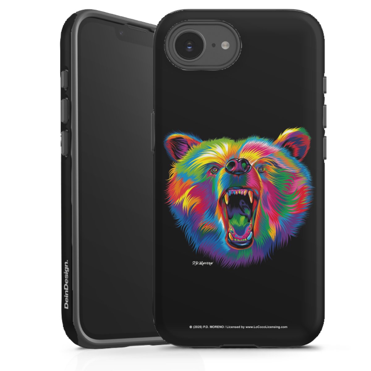 Bei dieser Handyhülle nutzen wird den besonders langlebigen Sublimationsdruck. Dieses raffinierte Druckverfahren sticht durch sein hochwertiges, gestochen scharfes Druckbild in brillanten Farben hervor. Der Druckbereich umfasst die ganze Hartschale inklusive der Ecken und Kanten, lediglich der Silikon-Einleger bleibt einfarbig schwarz. Wähle für Dein Design entweder eines unserer exklusiven Shop-Motive, oder werde kreativ und gestalte Dein Wunschdesign zum Beispiel mit Fotos und Overlays selbst.